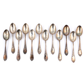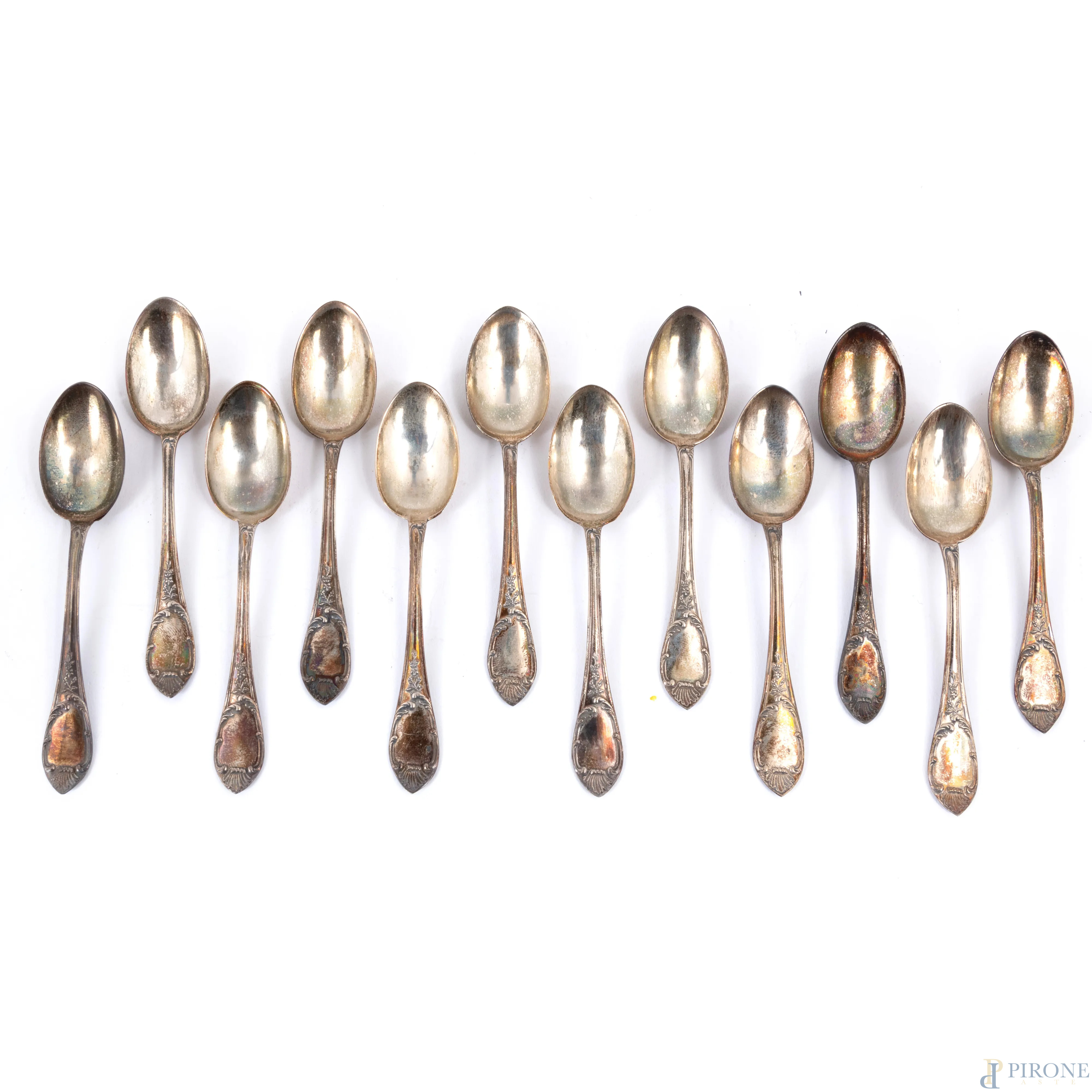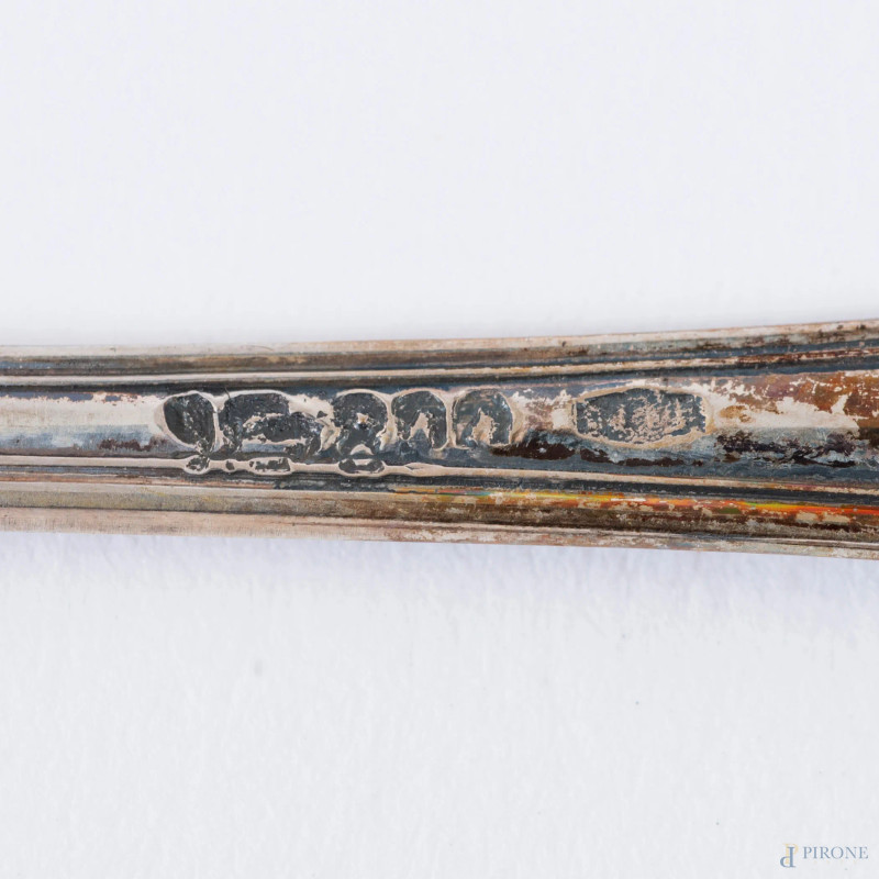 Lotto di 12 cucchiaini da caffè in argento 800/000, lunghezza cm 10, peso complessivo gr 90