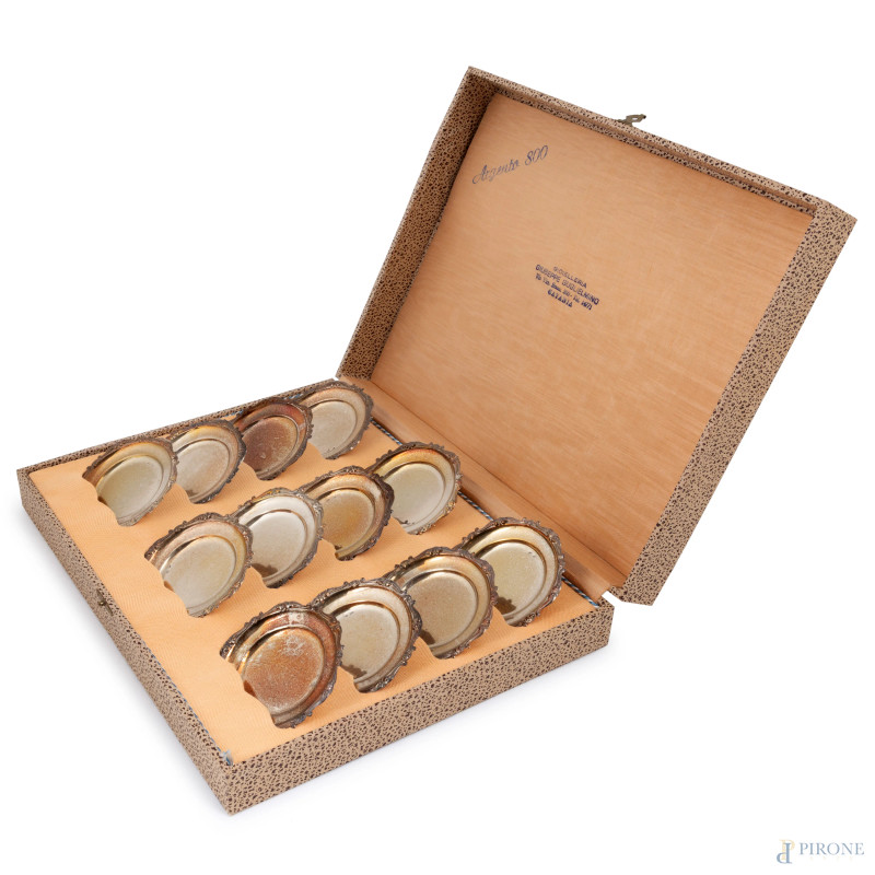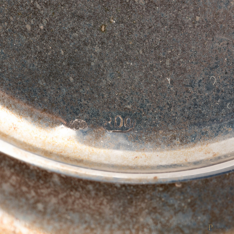 Lotto di 12 sottobicchieri in argento 800/1000, diametro cm 8, peso complessivo gr 130