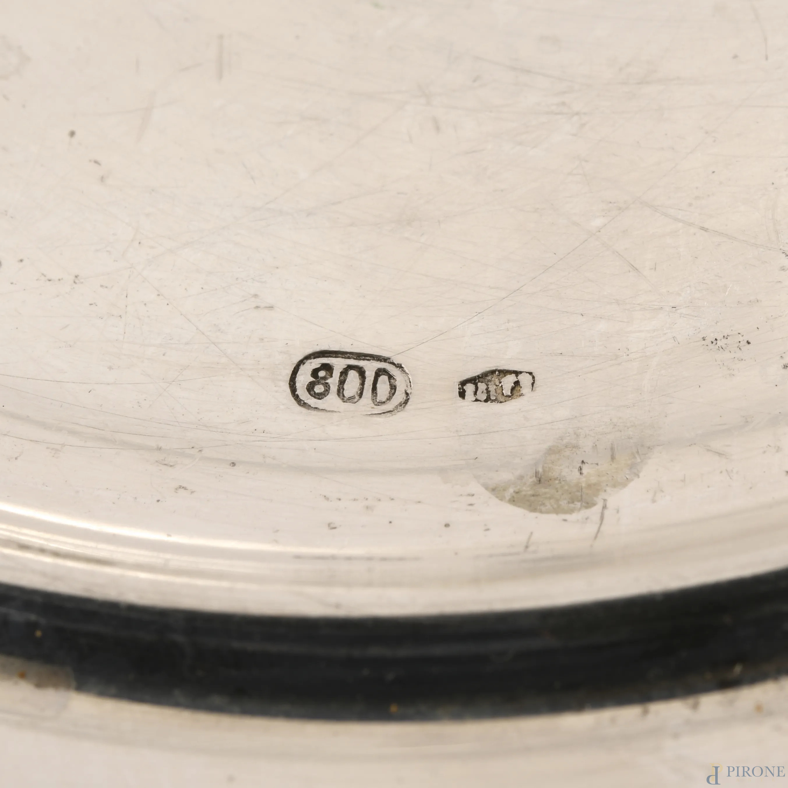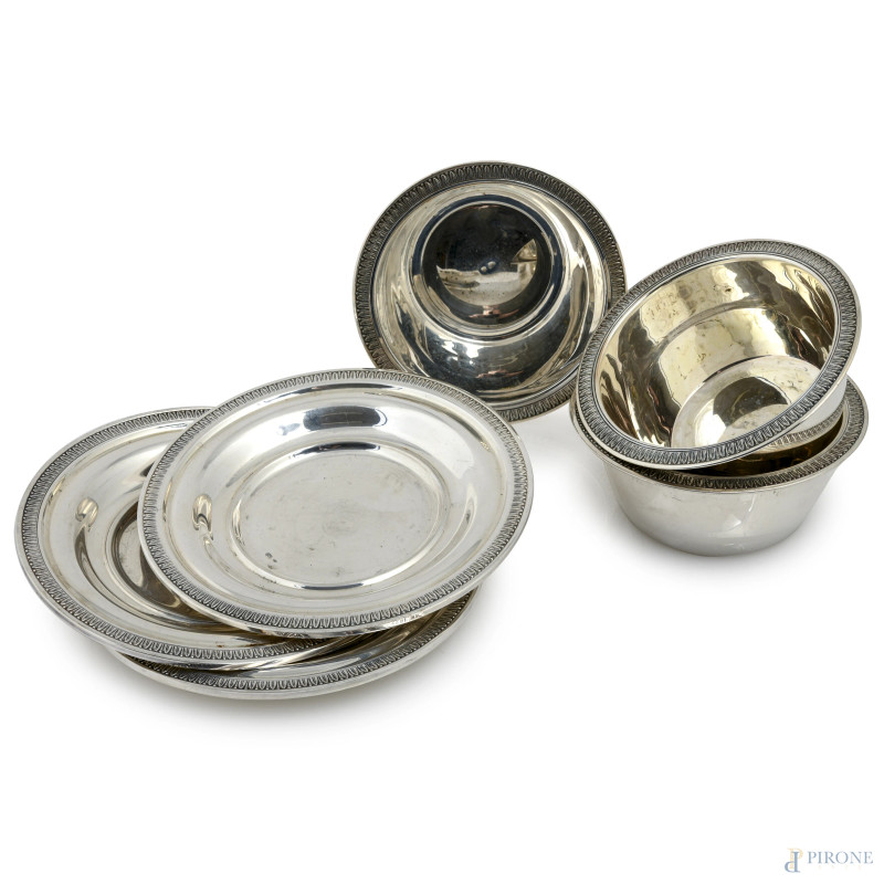 Lotto di 3 coppette e 3 piattini in argento 800/000, peso complessivo gr 550, misure massime cm 4,5x15