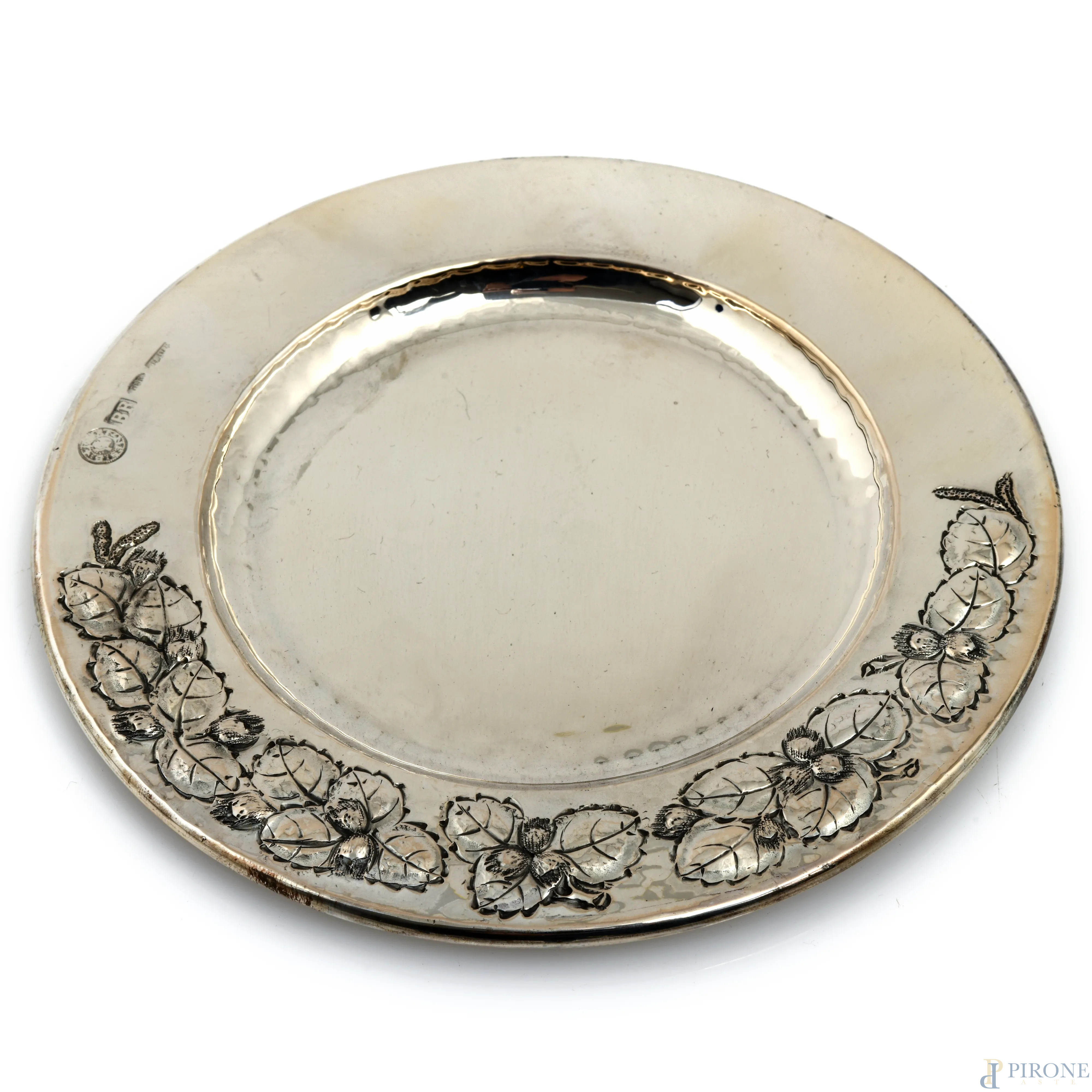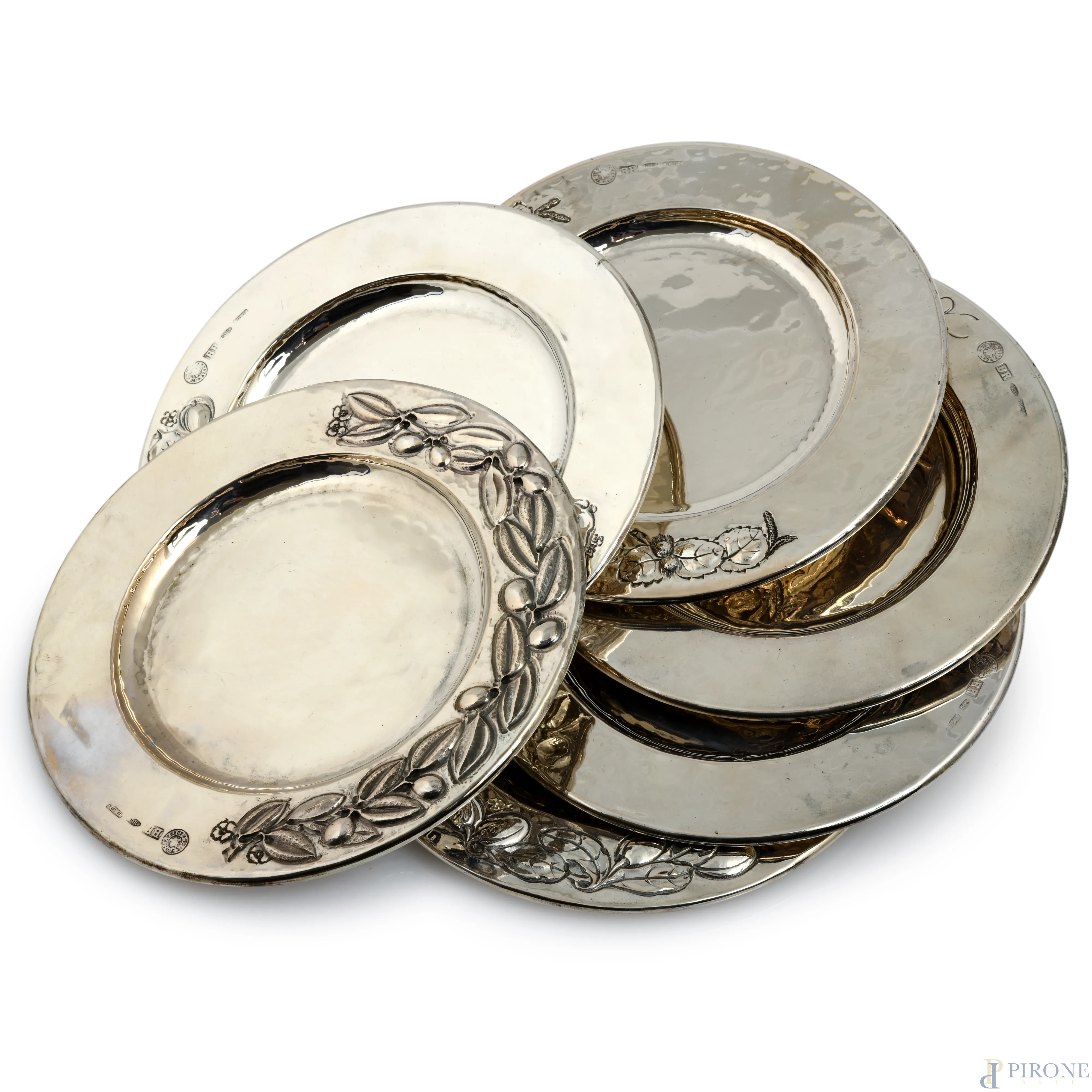 Lotto di 6 piattini in argento Brandimarte, peso gr 500, diametro cm 14