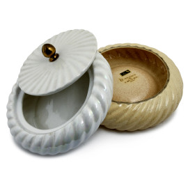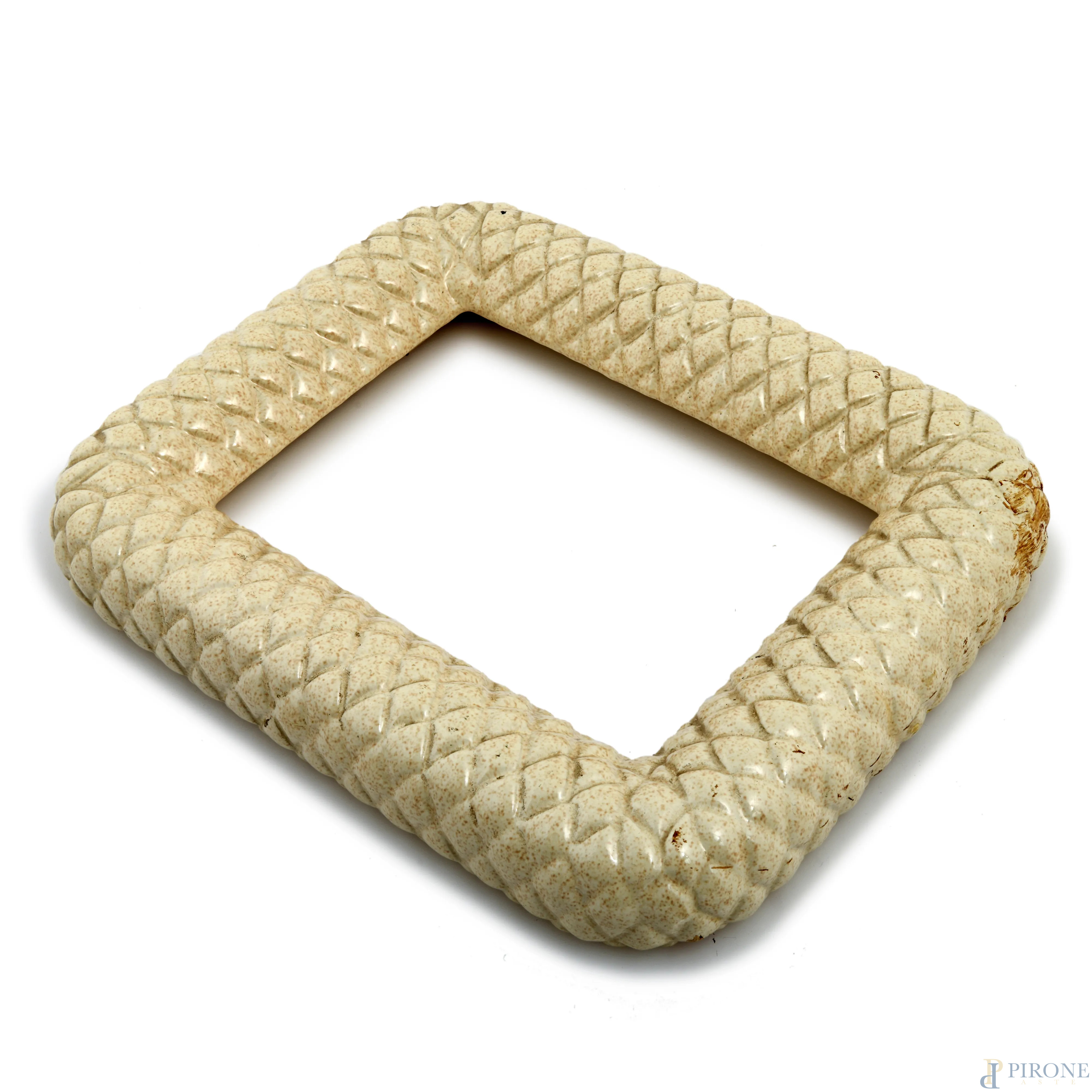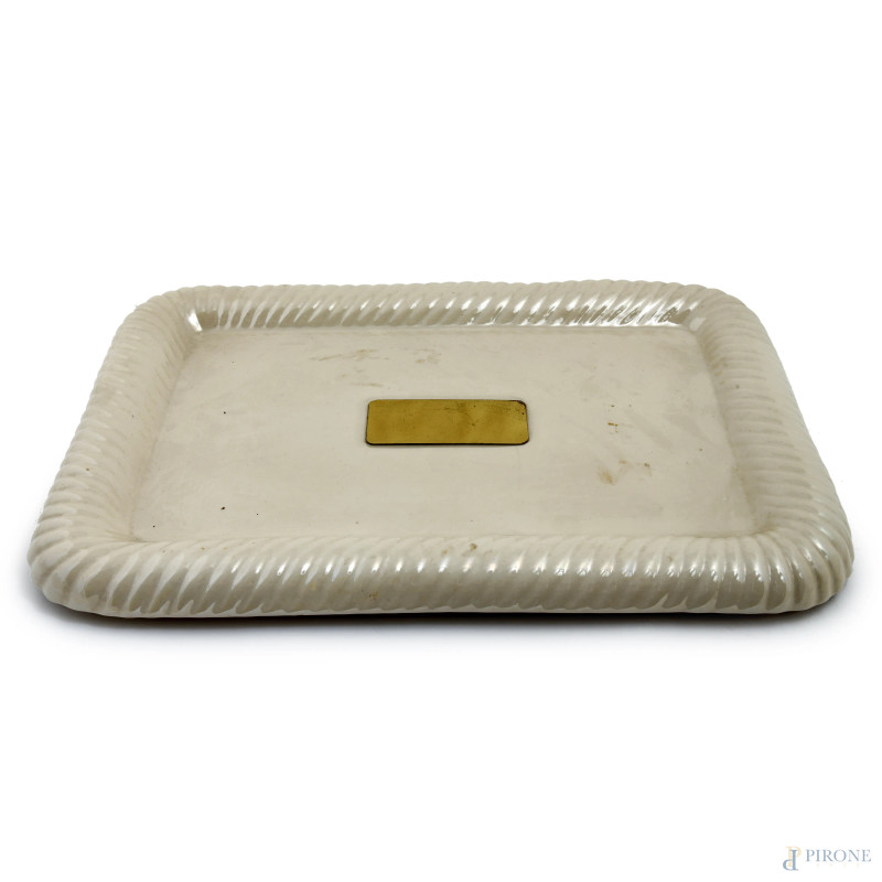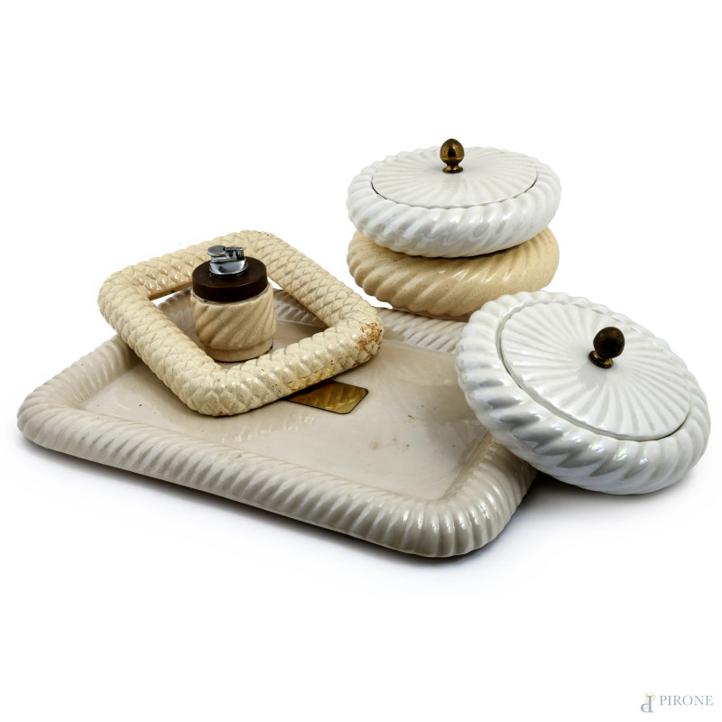 Lotto di oggetti in ceramica Barbi composto da tre portabombon, un accendino da tavolo, una cornice e un vassoio, , XX secolo, misura massima