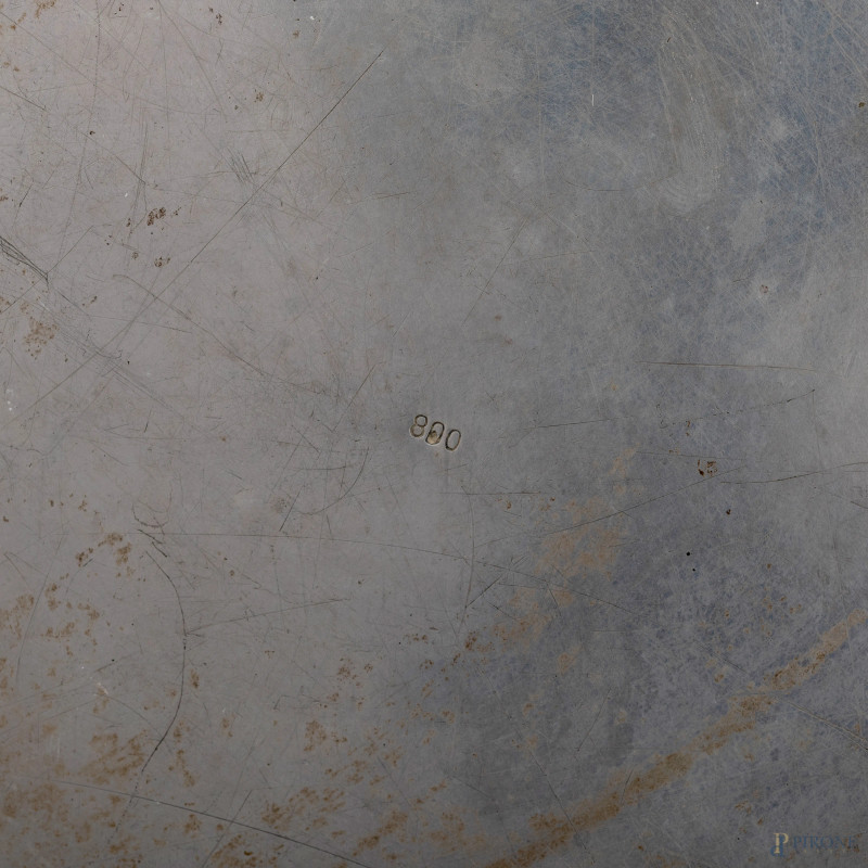 Lotto di tre piatti in argento 800/000, diametro massimo cm 28,5, peso complessivo gr 1130