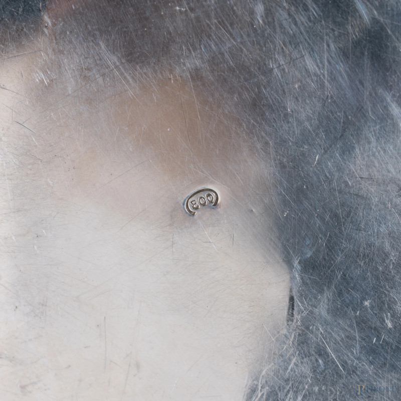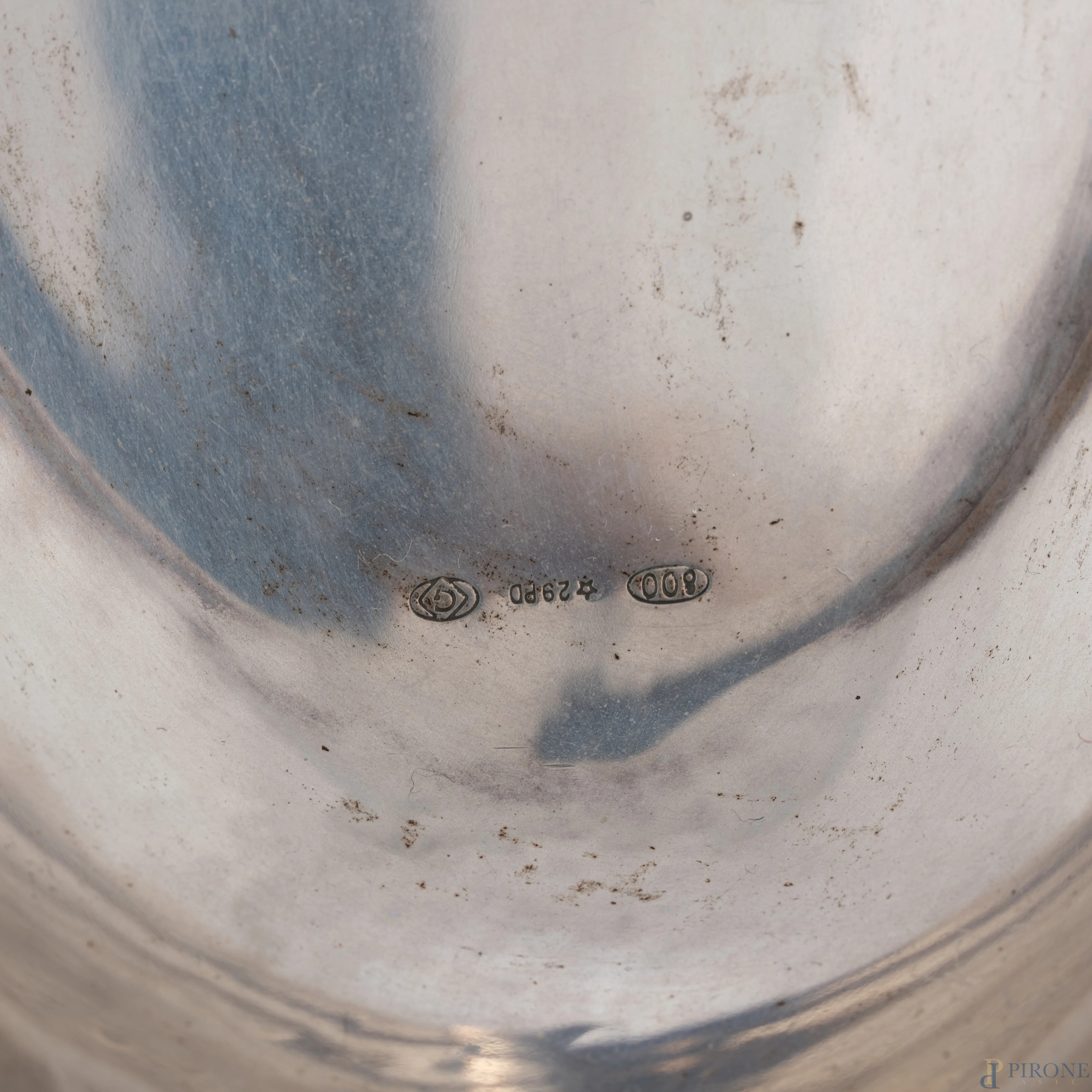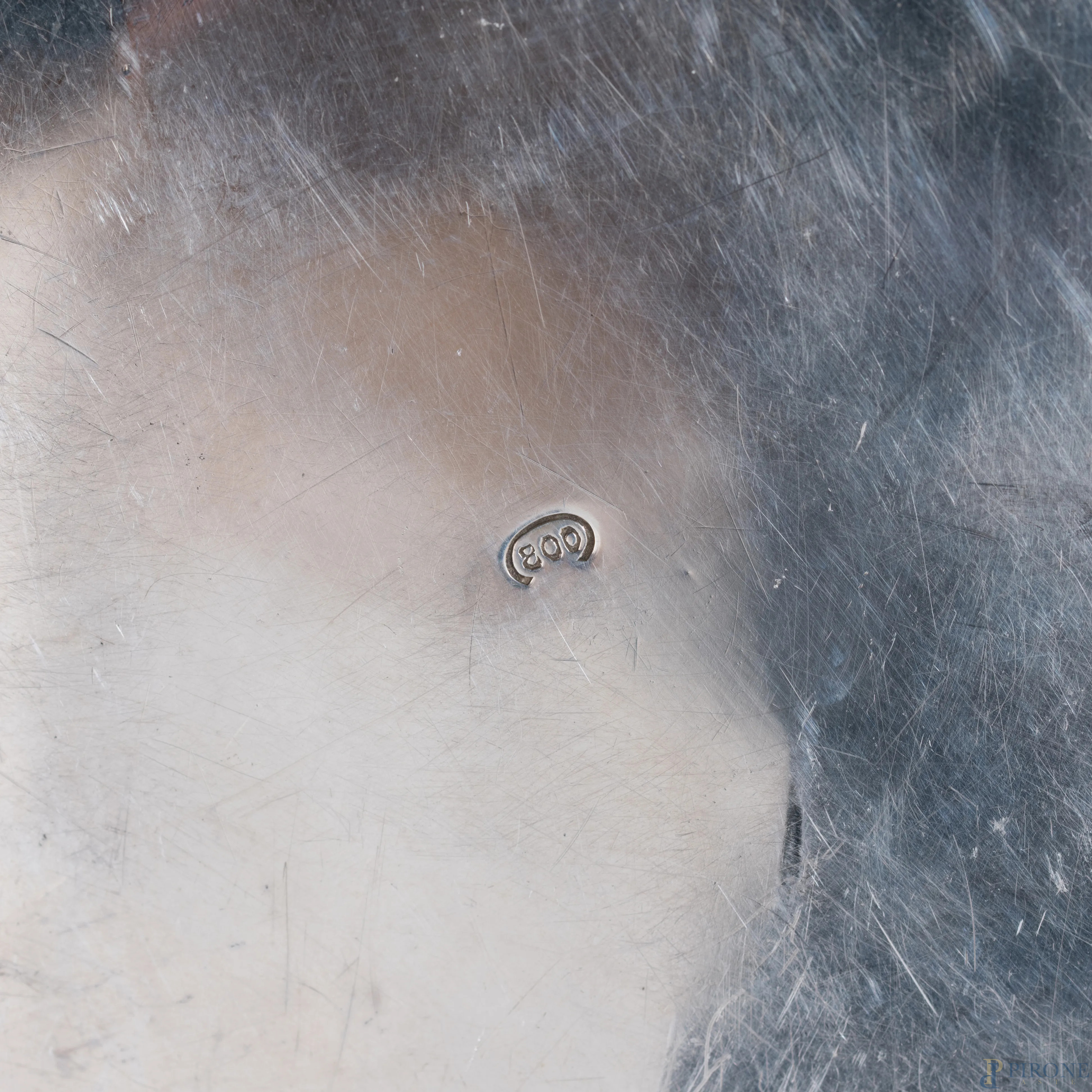 Lotto di un piatto e un centrotavola in argento 800/000, misura massima cm 6x19, peso complessivo gr 290