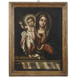 Madonna con bambino, XVII-XVIII secolo, olio su tela, cm 98,5x75,5, entro cornice