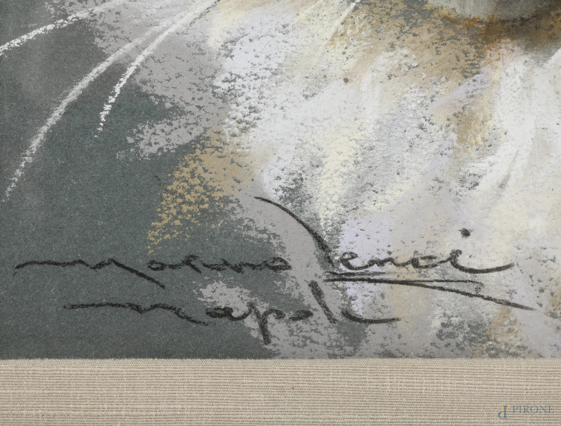 Marino Lenci, Gatto, XX secolo, pastello su carta, cm 17x17, firmato in basso a sinistra e iscritti "Napoli", (ondulazioni della carta)