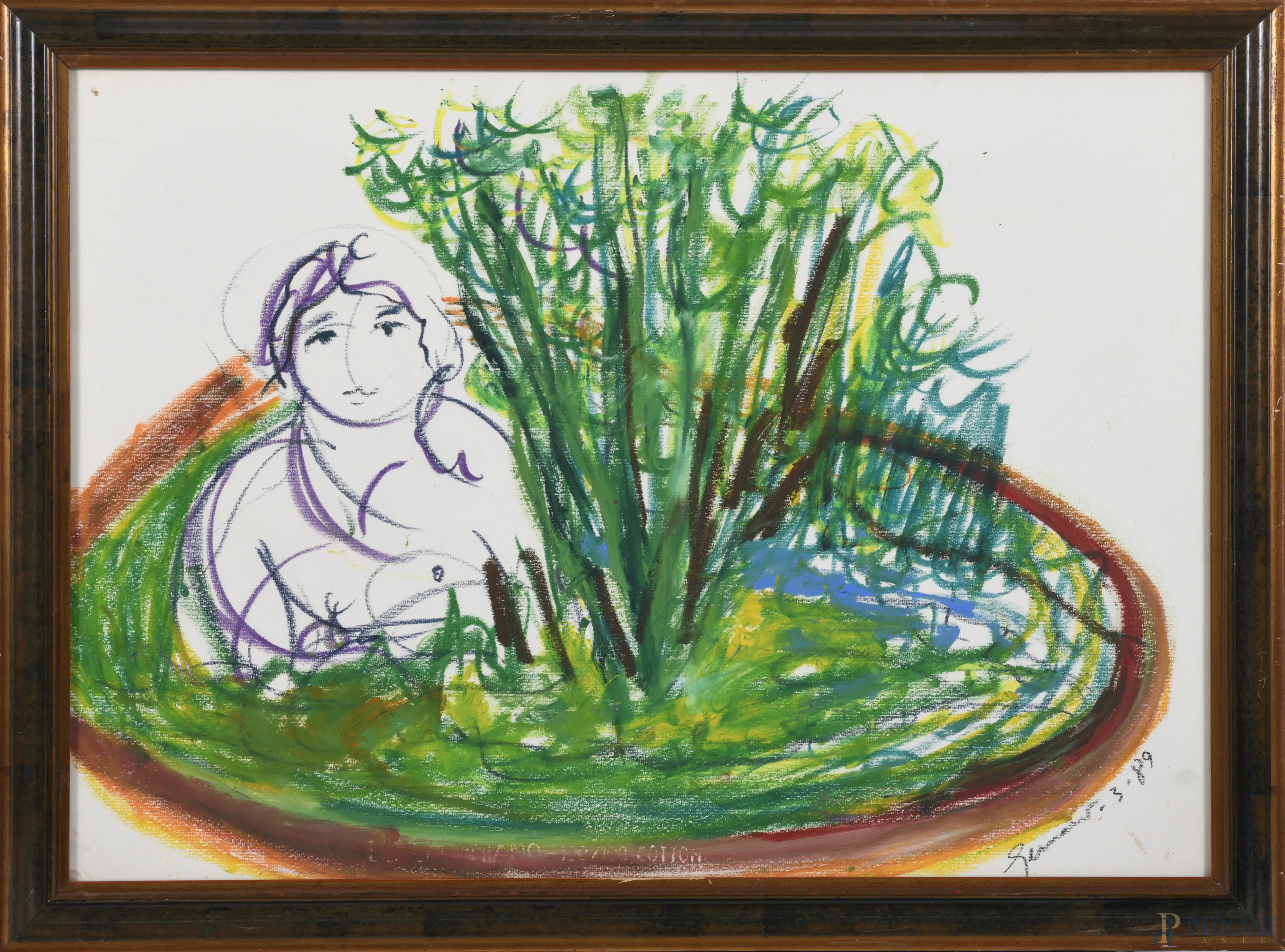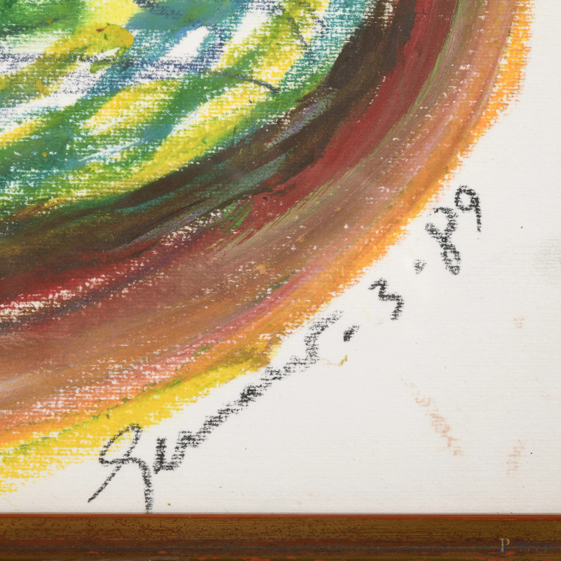 Mimmo Germanà, Senza titolo, tecnica mista su carta, cm 50x70, firmato e datato "3.89" in basso a destra, entro cornice, corredato di certificato di autenticità rilasciato dall'Archivio Generale dell'Opera di Mimmo Germanà