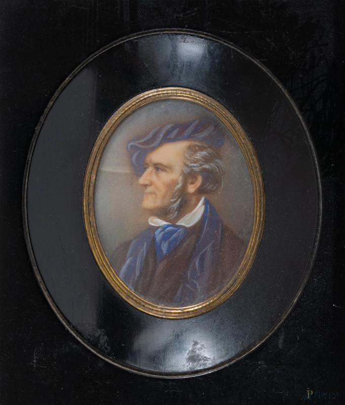 Miniatura raffigurante Richard Wagner, XIX secolo, misure comprensive di cornice cm 16x13,5