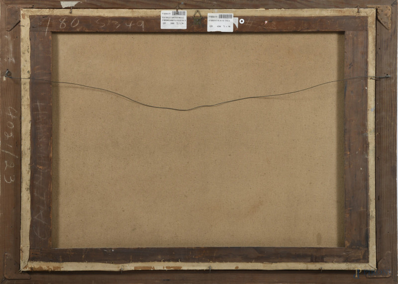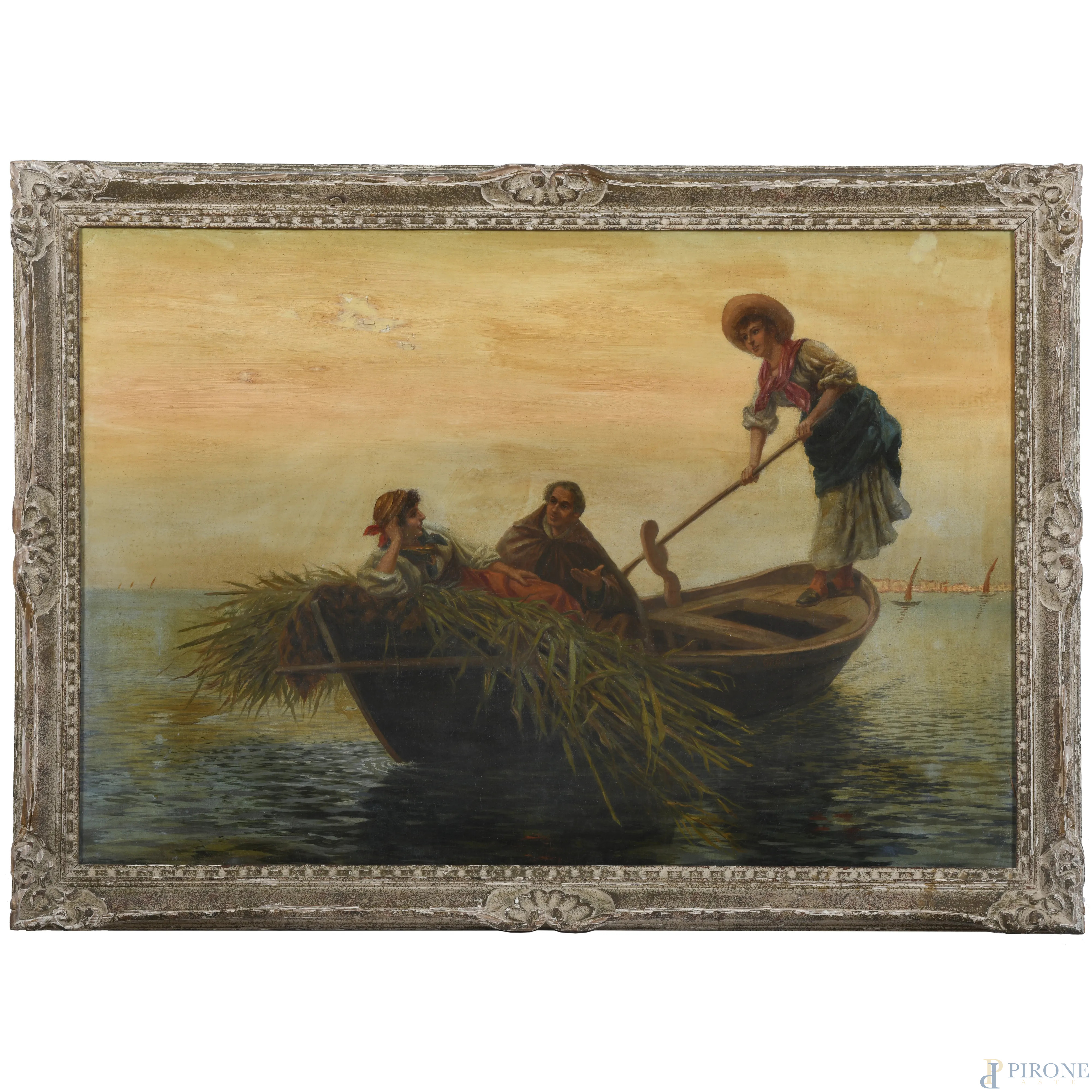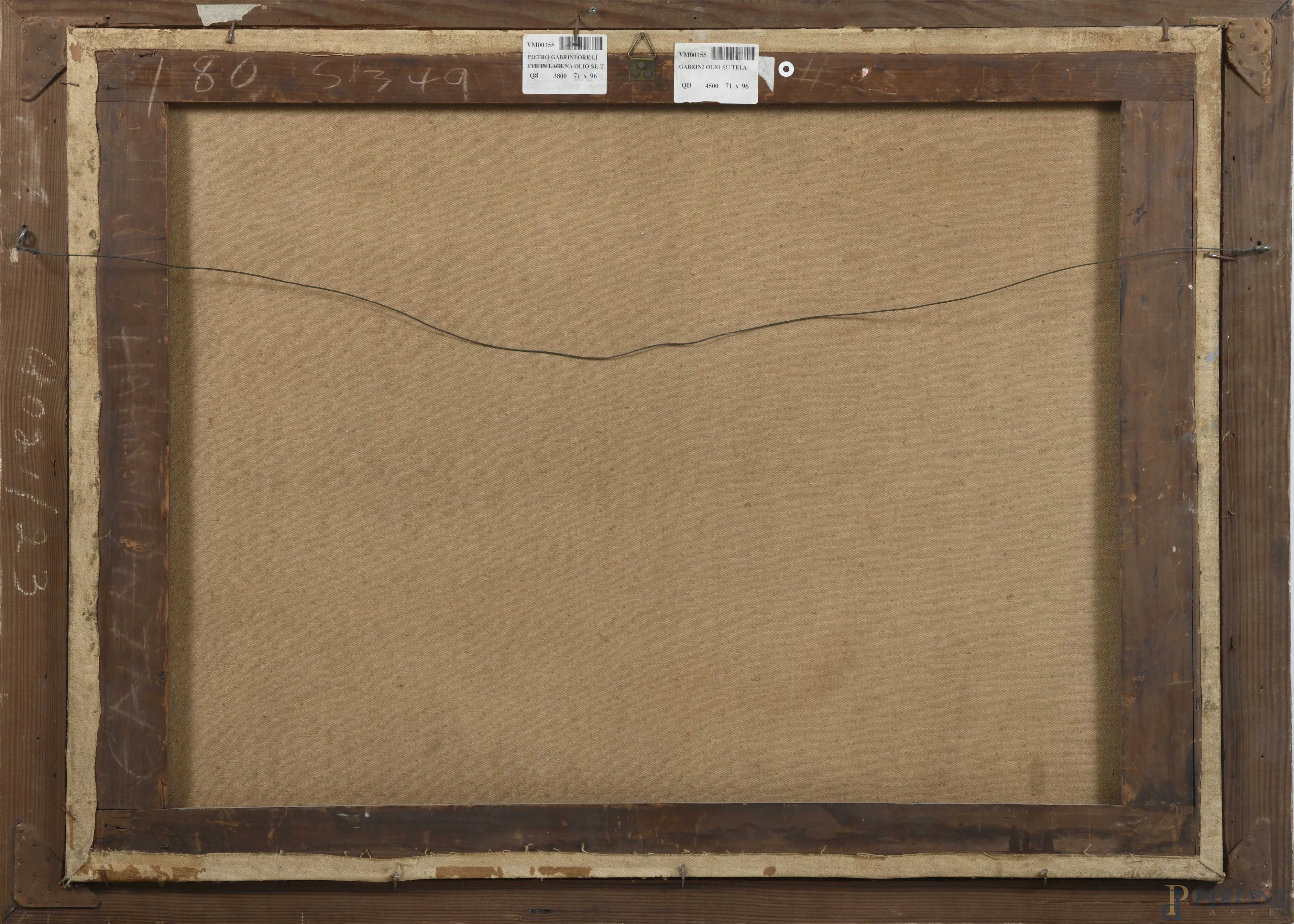 Pietro Gabrini (1856-1926), Ore liete, olio su tela, cm 71x96, firmato a destra, entro cornice, (sollevamenti di colore)