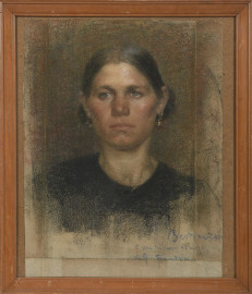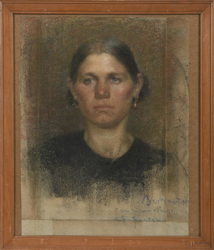 Pilade Bertieri (1874-1965), Ritratto di giovane donna, pastello su carta, cm 60x45,5, firmato, dedicato e datato 901 in basso a destra, (segni di piegatura, refilatura del foglio, piccola lacuna)