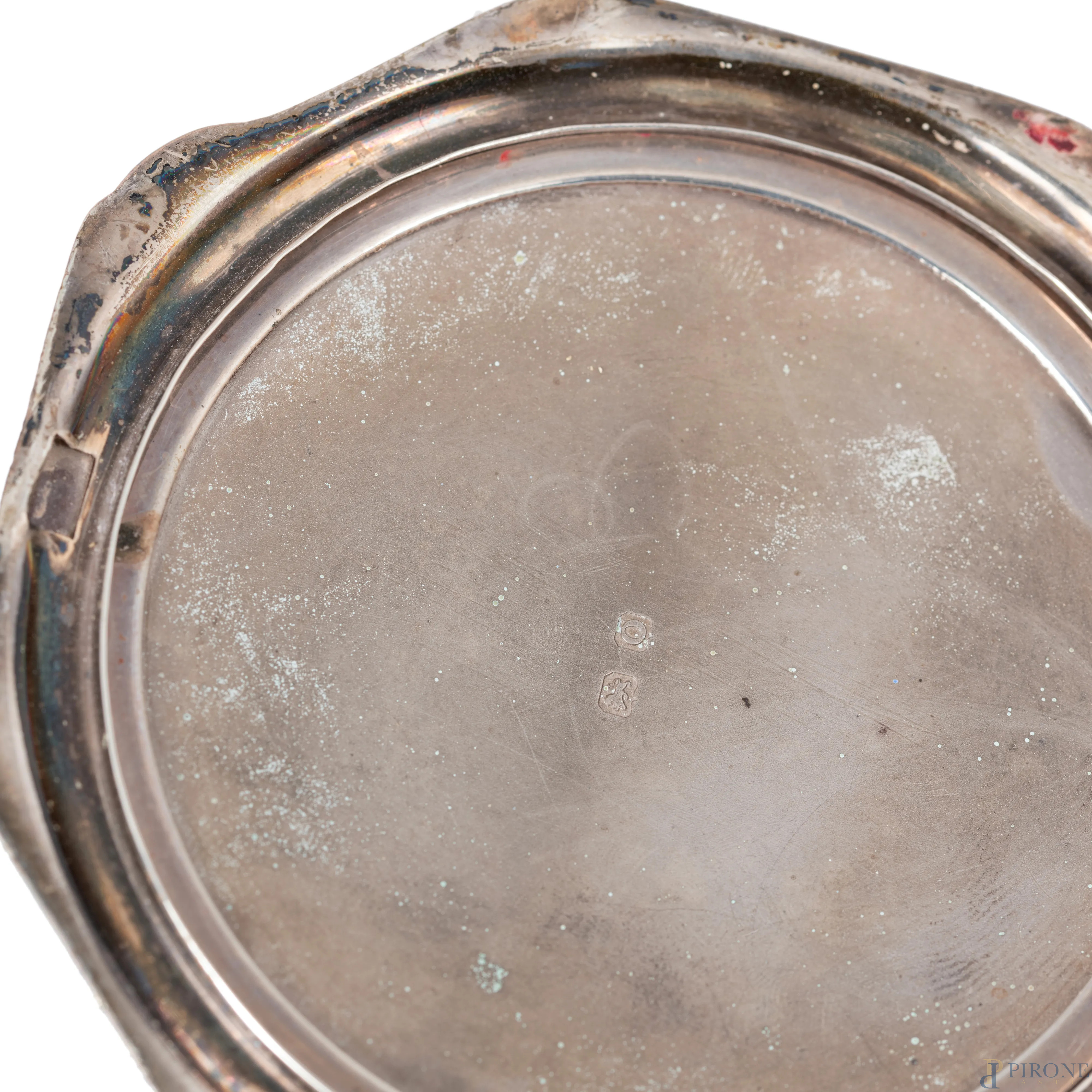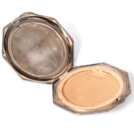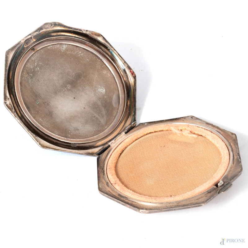 Portacipria ottagonale in argento con coperchio smaltato nei toni dell'azzurro, XX secolo, cm 7,5x7,5, peso complessivo lordo gr 65