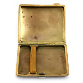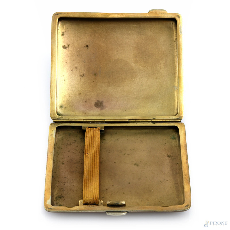 Portasigarette in metallo con coperchio smaltato nei toni dell'azzurro, XX secolo, cm 8,5x7,5