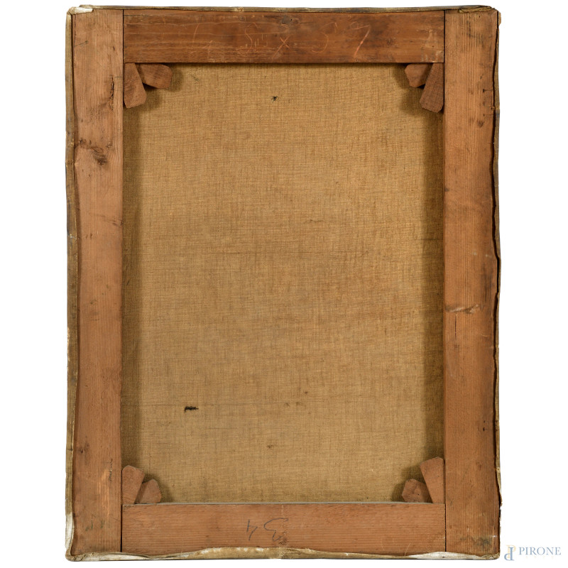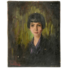 Ritratto di bambina, XX secolo, olio su tela, cm 57x45 , firmato in basso a sinistra e datato "1926", (difetti, cadute di colore, lacerazioni, fessurazioni)