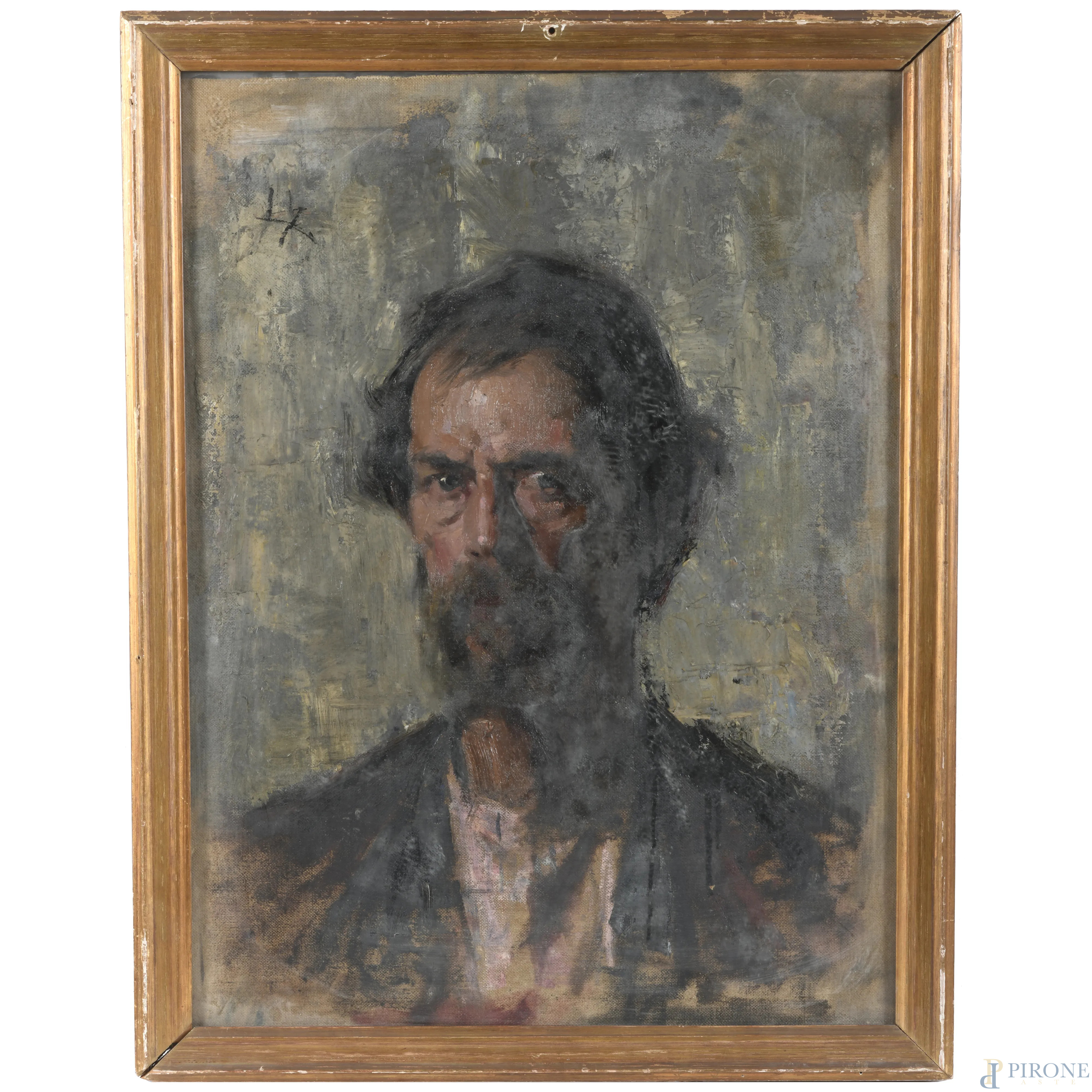 Ritratto di ragazza e ritratto virile, XX secolo, olio su tela (recto e verso), cm 57,5x43, siglati in alto a sinistra, entro cornice