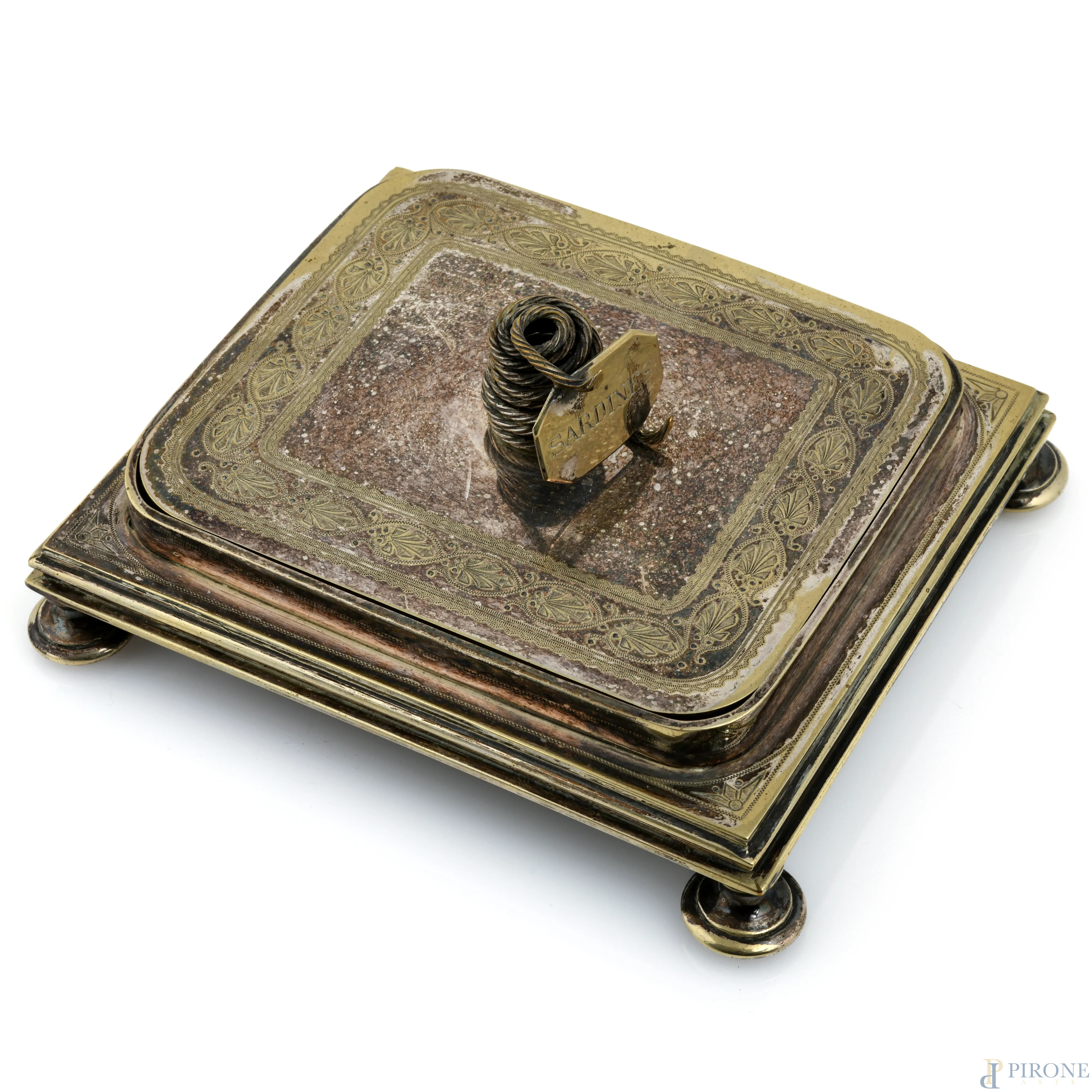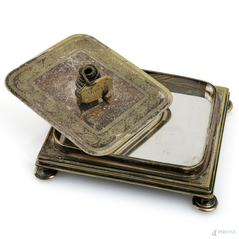 Sardiniera in metallo, XX secolo, cm 7,5x17x15