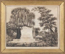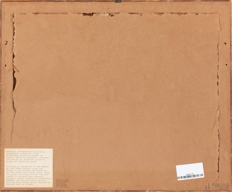 Sepolcro di Edward D. Merrick, XIX secolo, tecnica mista su carta, cm 33,5x41,5, entro cornice, (segni di usura, tracce di umidità, ondulazioni del supporto)