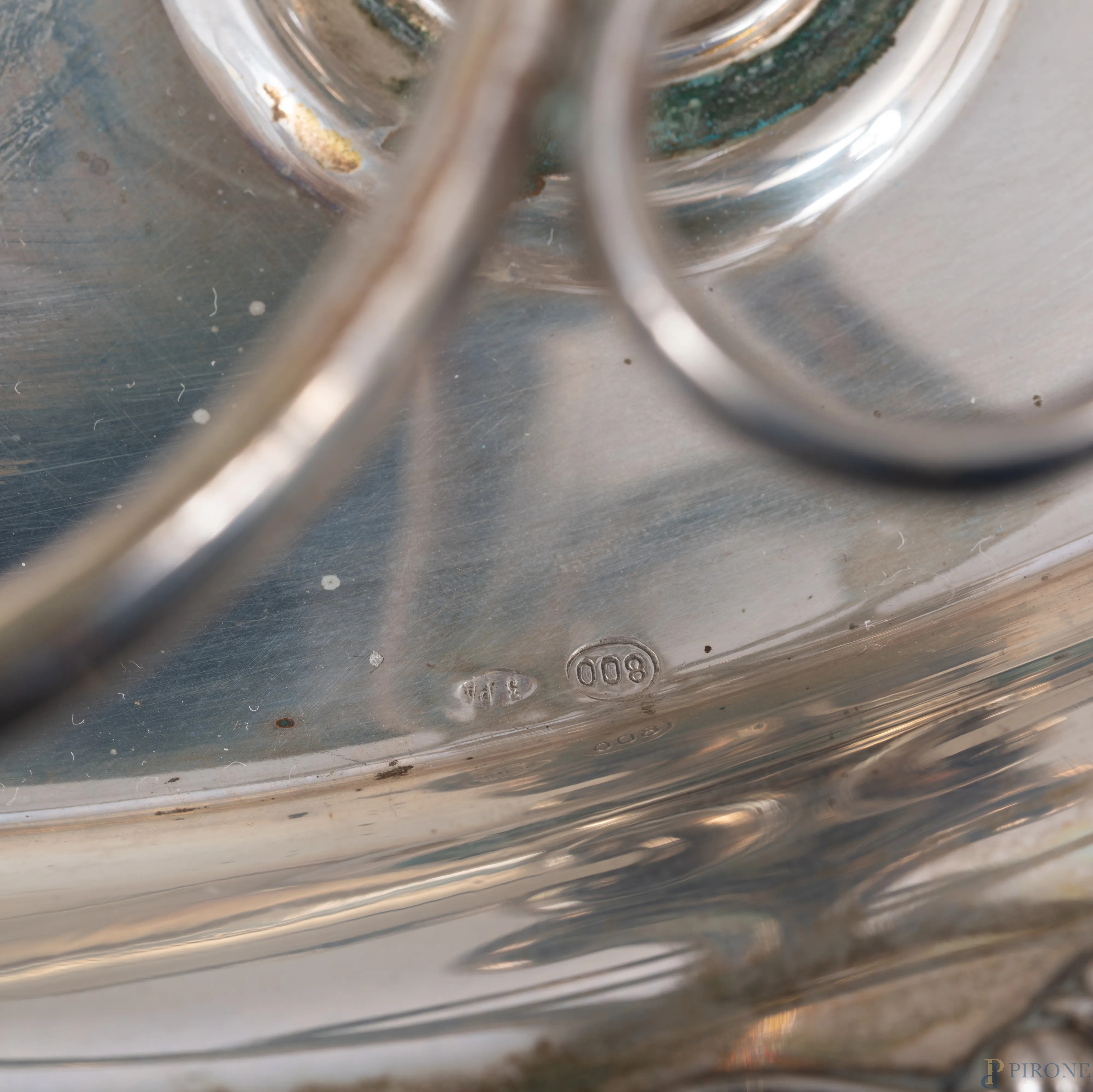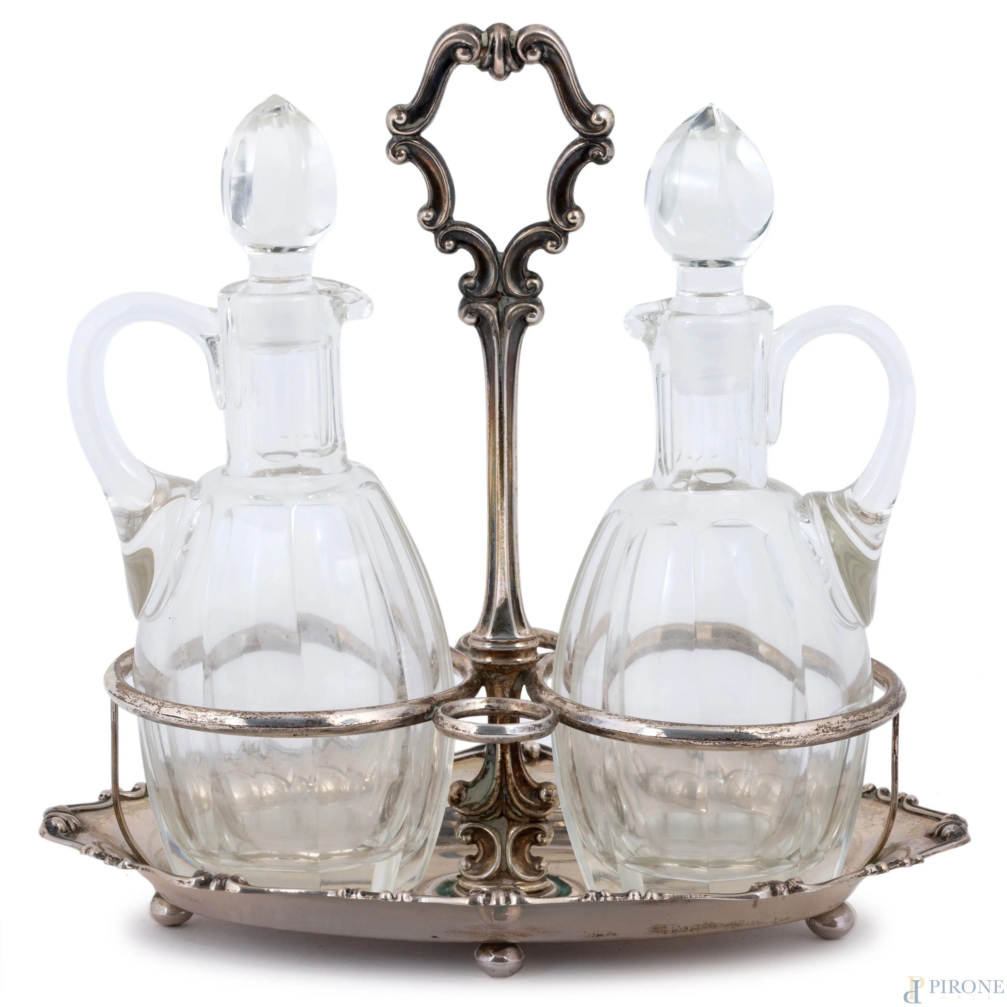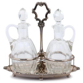Servito da tavola in cristallo e argento 800/000 punzone 3PA Formusa, cm 23x23x15, peso gr 170 (mancanze)