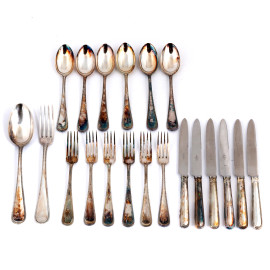 Composto da: 6 forchette, 6 cucchiai, 6 coltelli, forchetta e cucchiaio da portata