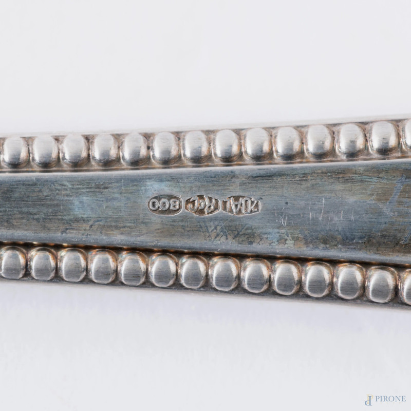 Servizio di posate in argento 800/000 con punzone 20 AL Ricci&Co, misura massima cm 25,5, peso al netto dei coltelli gr 1230
