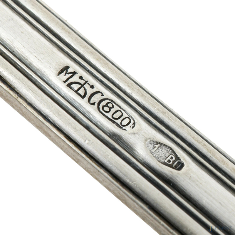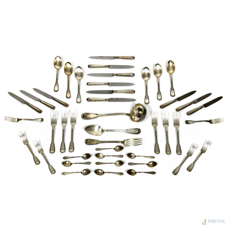Servizio di posate in argento 800/000, peso complessivo al netto dei coltelli gr 1970,composto da:
