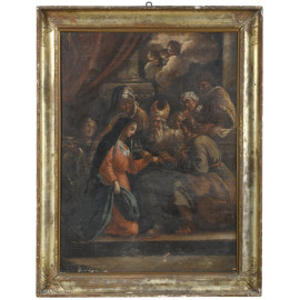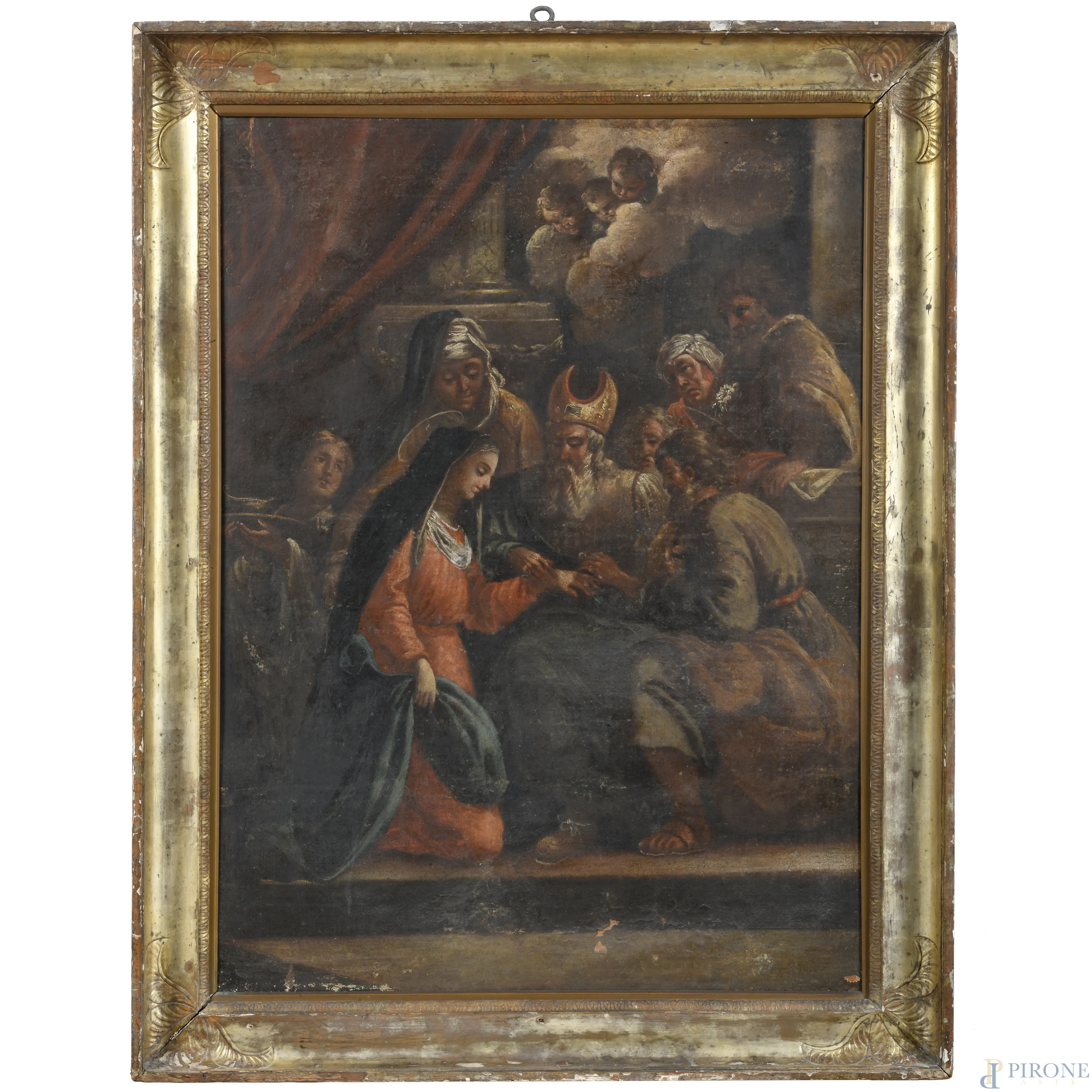 Sposalizio della Vergine, XVIII secolo, olio su tela, cm 100x76, (abrasioni, sollevamenti e cadute di colore, tracce di umidità, mancanza di tensione, difetti)
