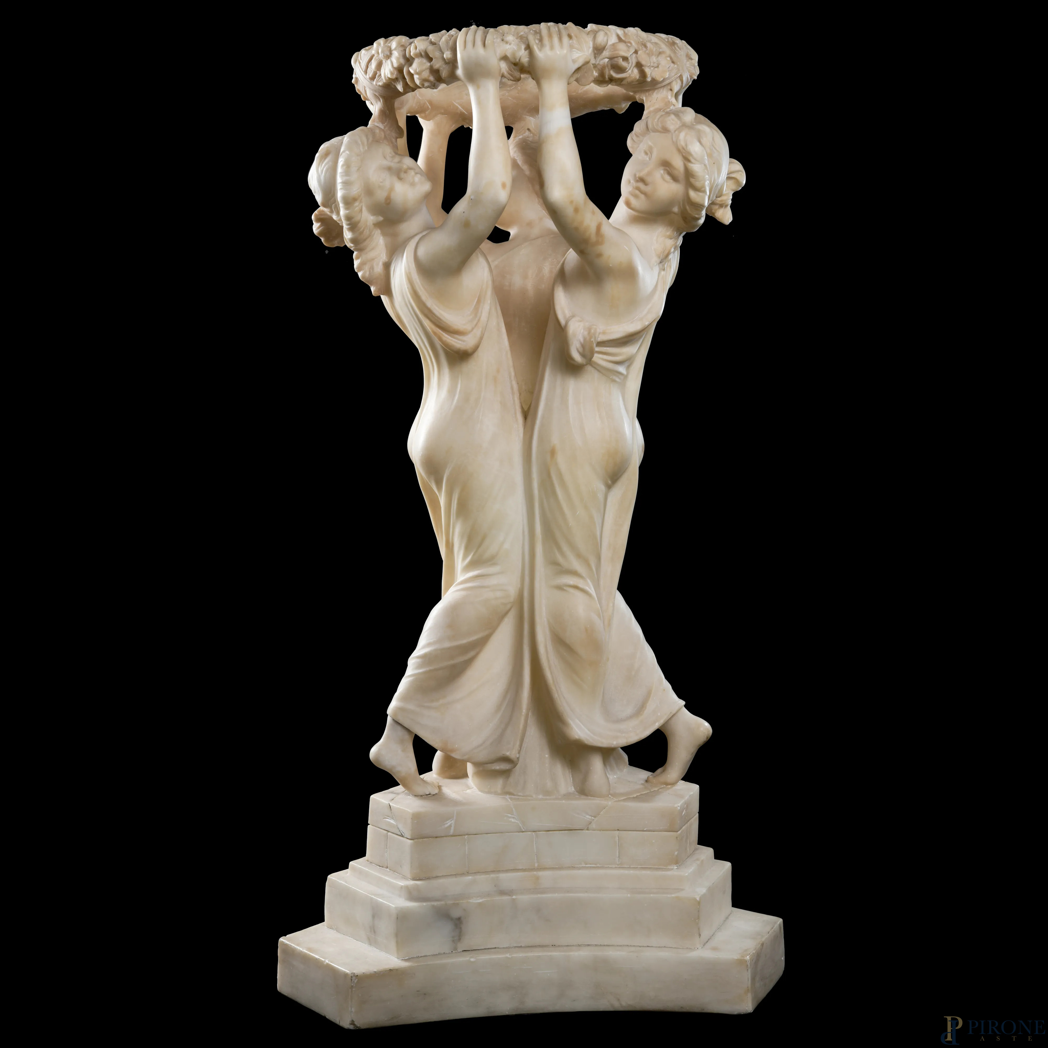 Tre Grazie, XIX secolo, scultura in alabastro, altezza cm 68, (scalfiture)