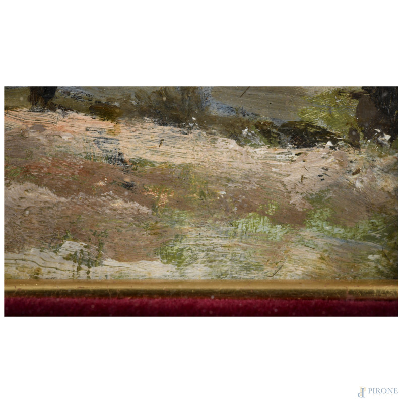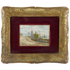 Viale, XX secolo, olio su tavoletta, cm16,5x23, entro cornice