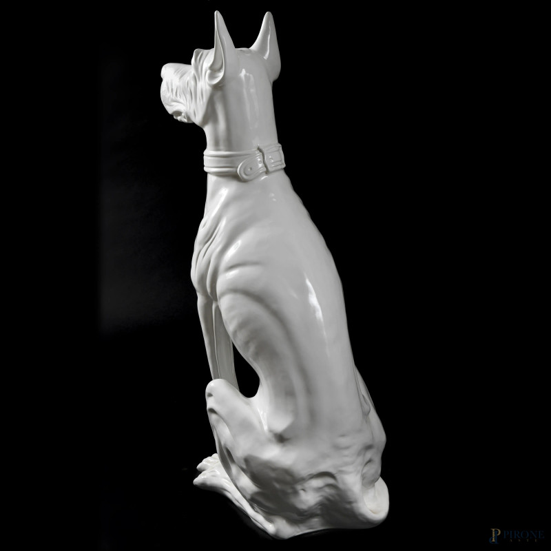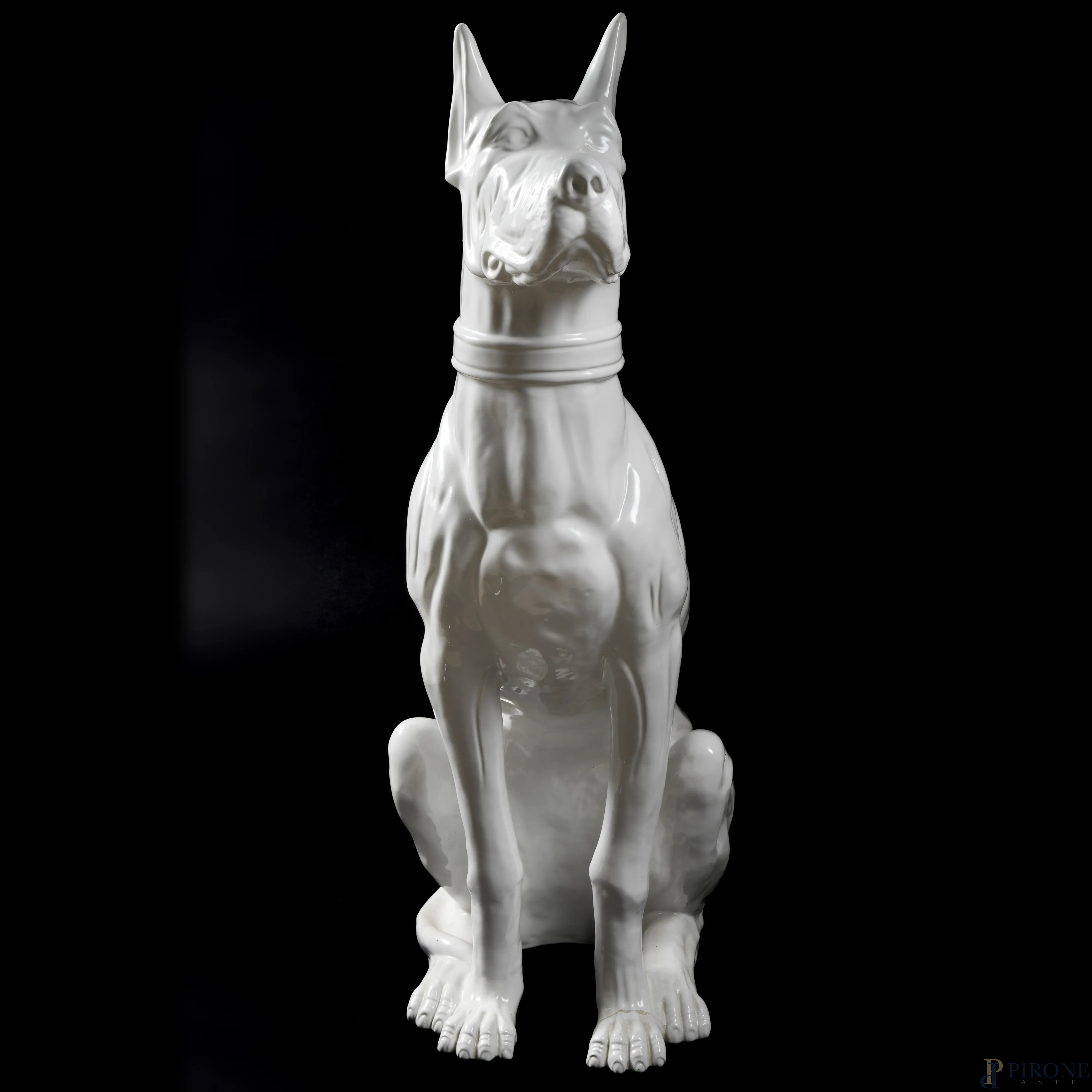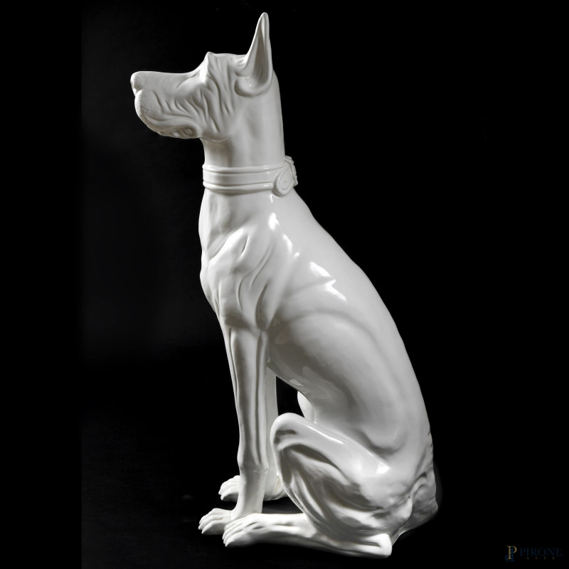 Alano, XX secolo, scultura in maiolica bianca, altezza cm 102, (restauri, difetti)