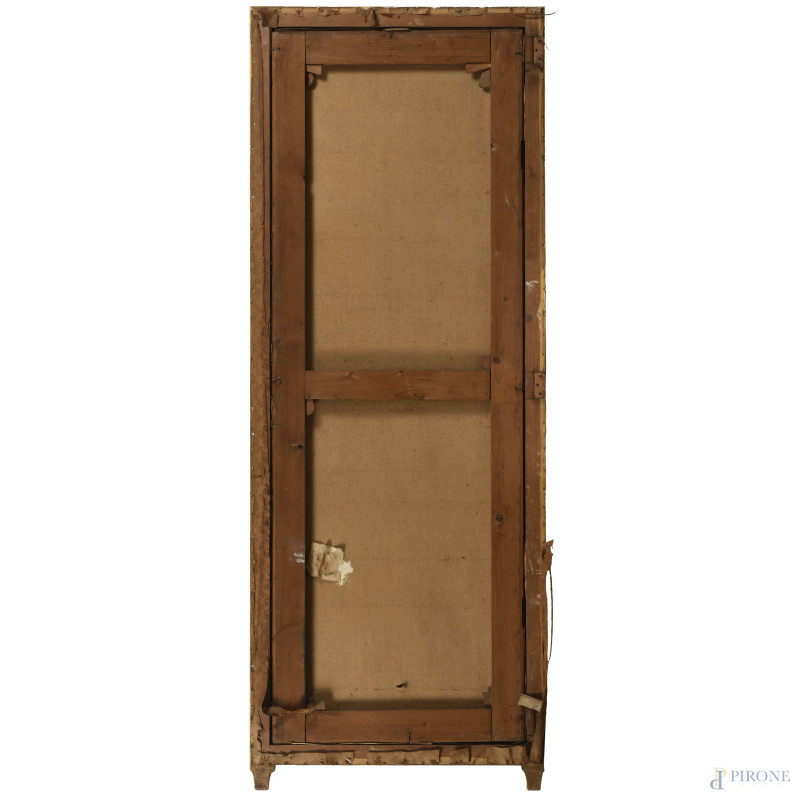 Amorino, XX secolo, olio su tela, cm 169x59, (sollevamenti di colore, abrasioni, piccole cadute di colore, rotture, lacerazioni)