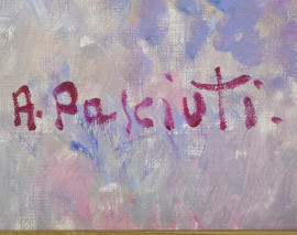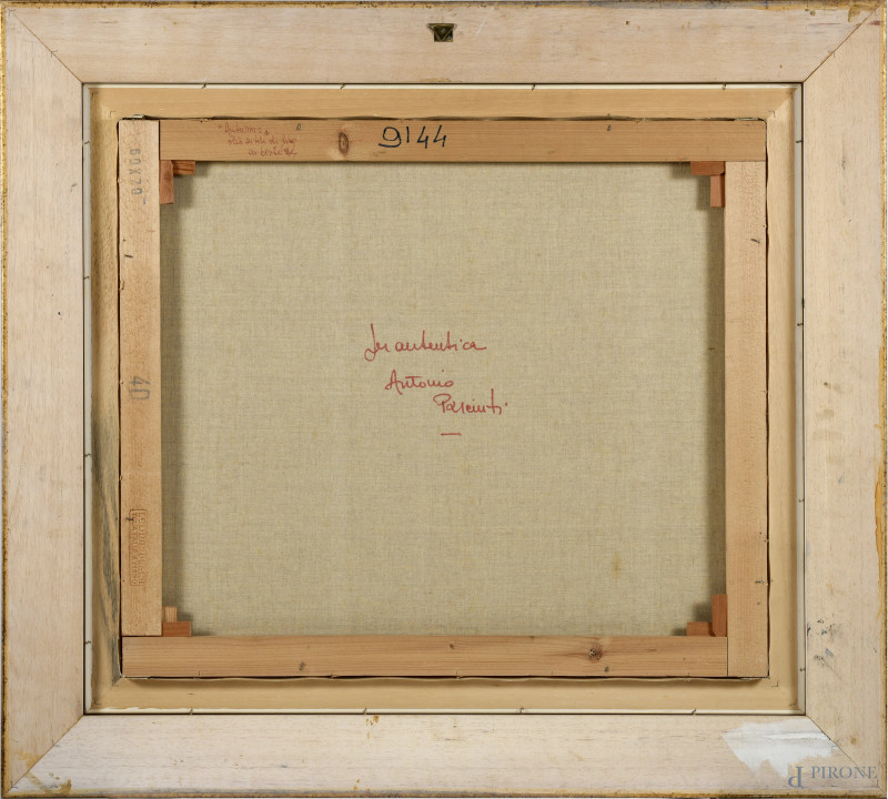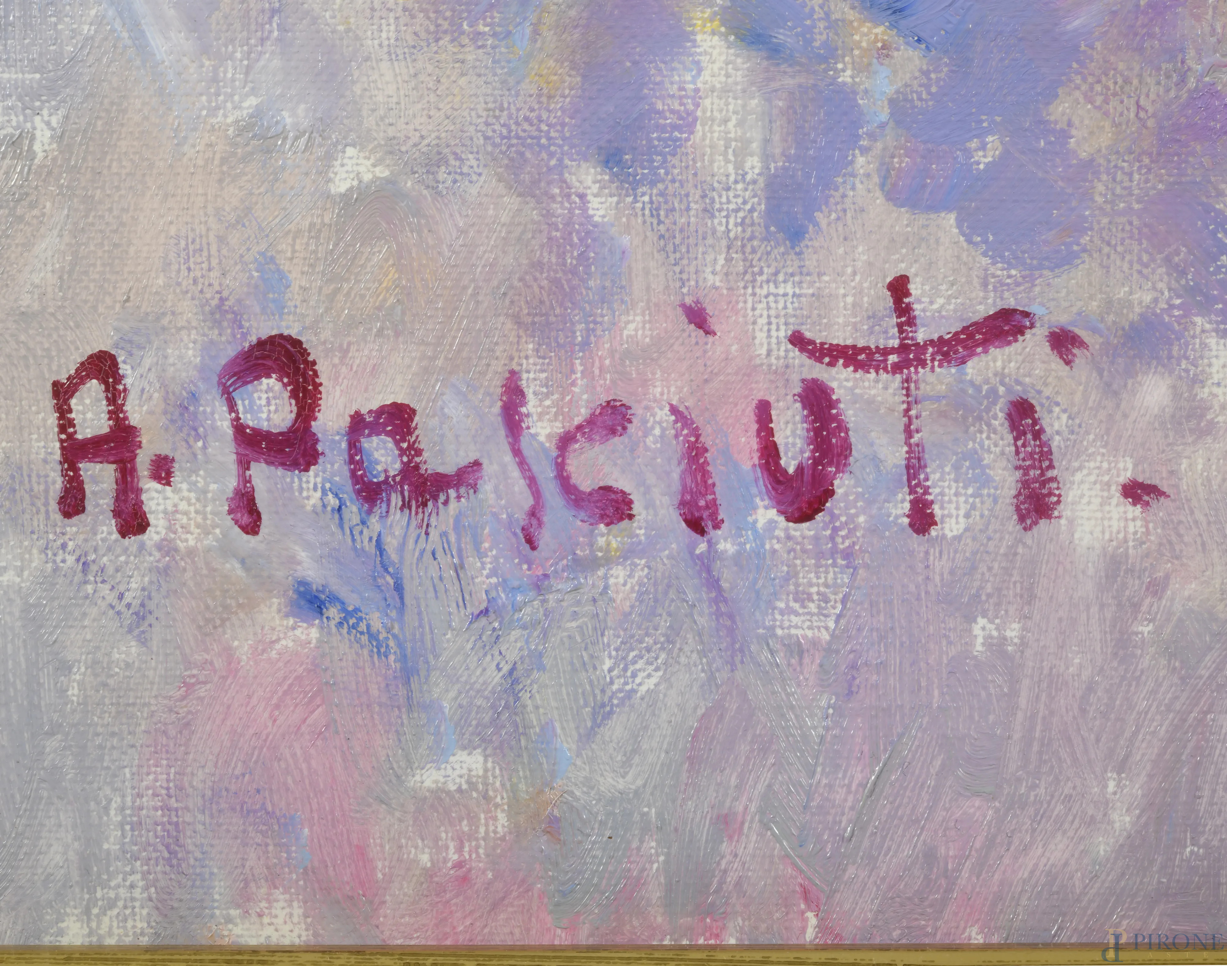 Antonio Pasciuti (1937-2021), Paesaggio primaverile, olio su tela, cm 60x70, firmato in basso a sinistra e al retro per autentica, entro cornice