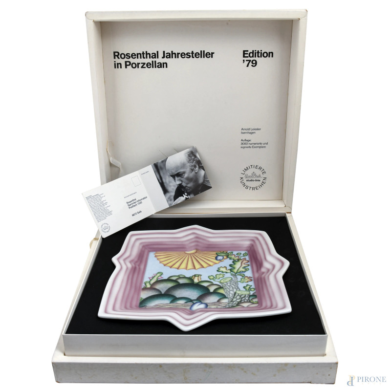 Arnold Leissler x Rosenthal, Piatto dell'Anno Jahresteller 1979, es. 1818/3000, cm 35x35x4