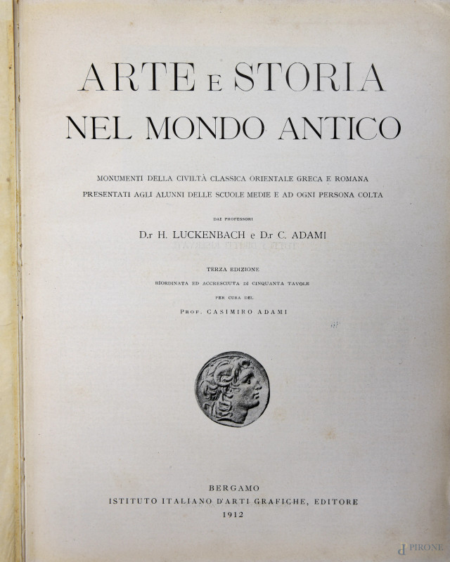 Arte e Storia nel Mondo Antico, Collezione di Testi-Atlanti per l'Insegnamento della Storia e dell'Arte, Bergamo, 1912, (segni di usura, tracce di umidità)