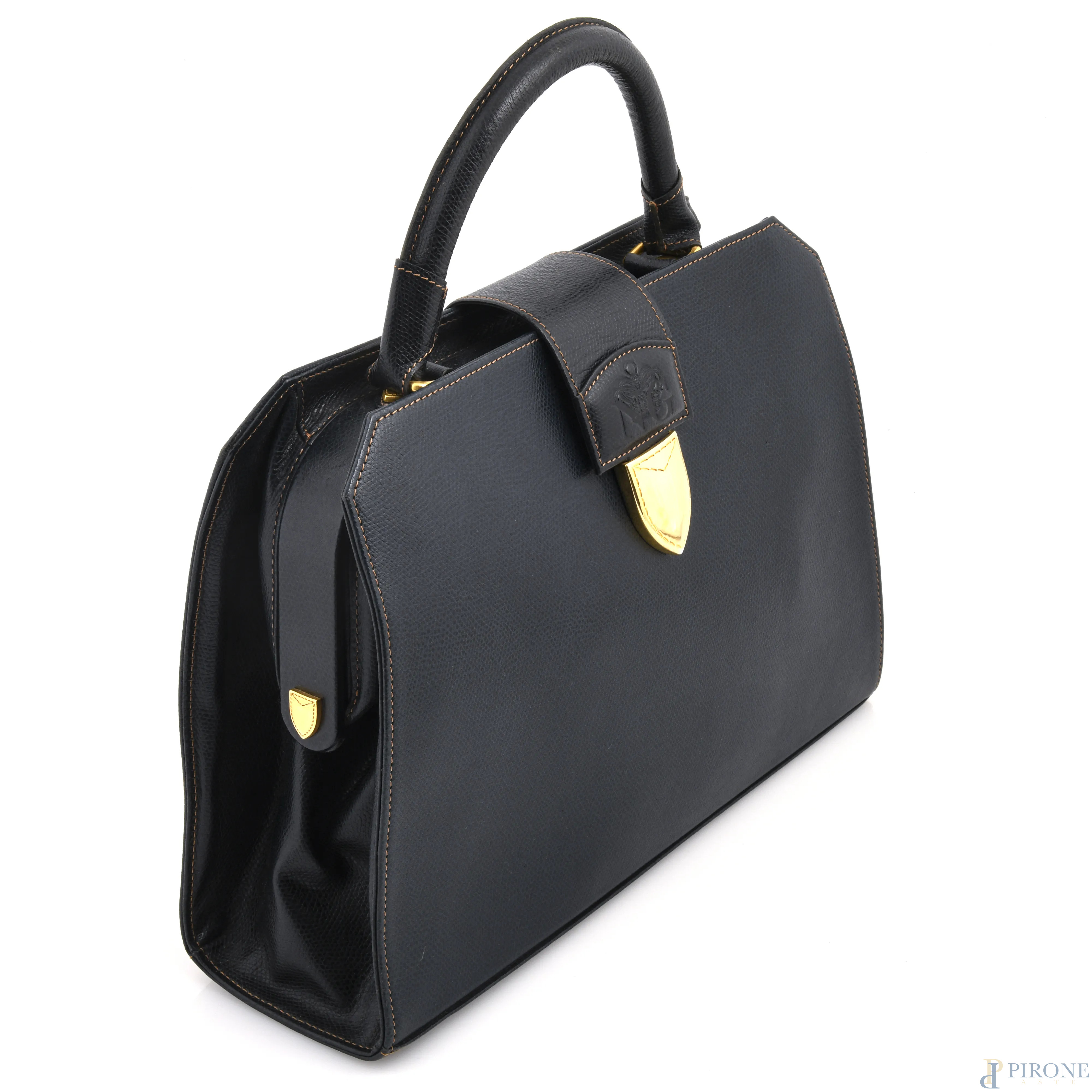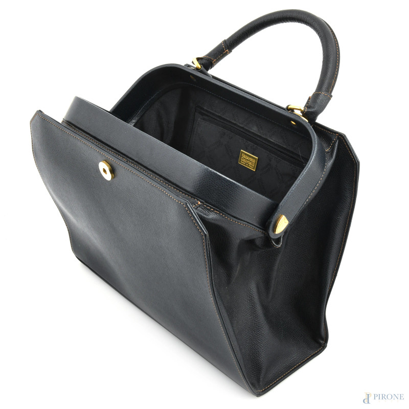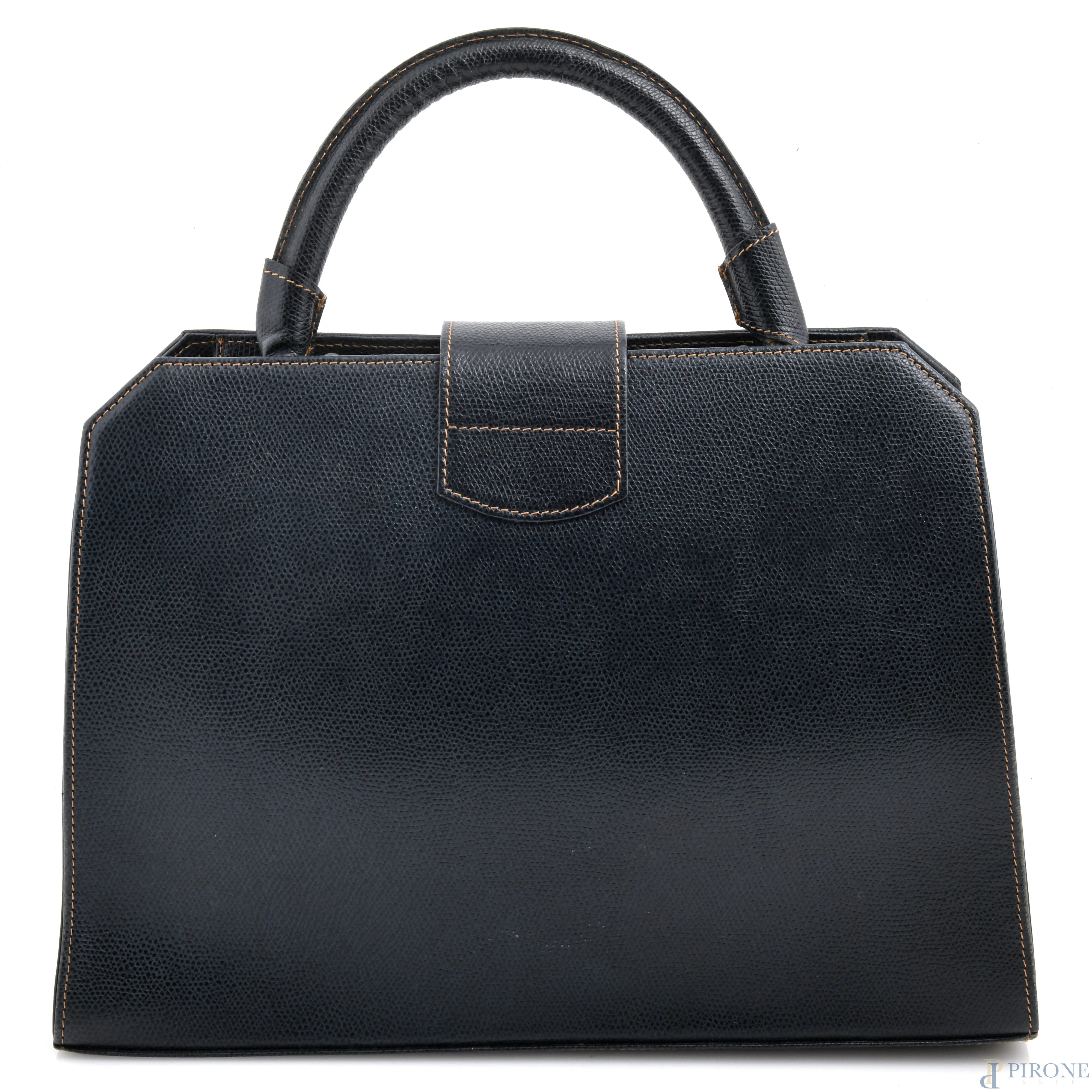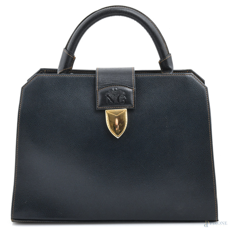 Borsa in pelle blu Nazzareno Gabrielli, 24,5x31x11, (segni di usura)