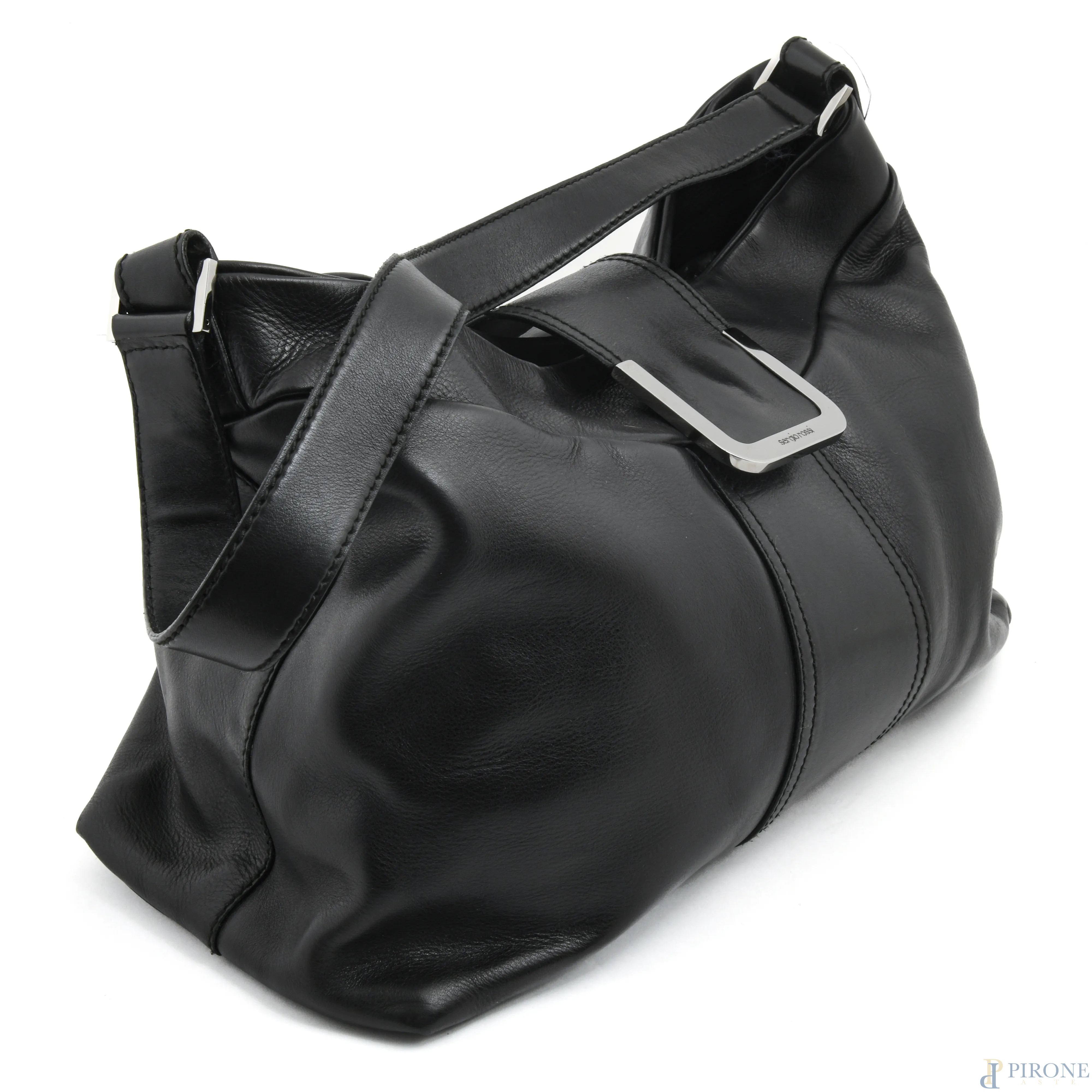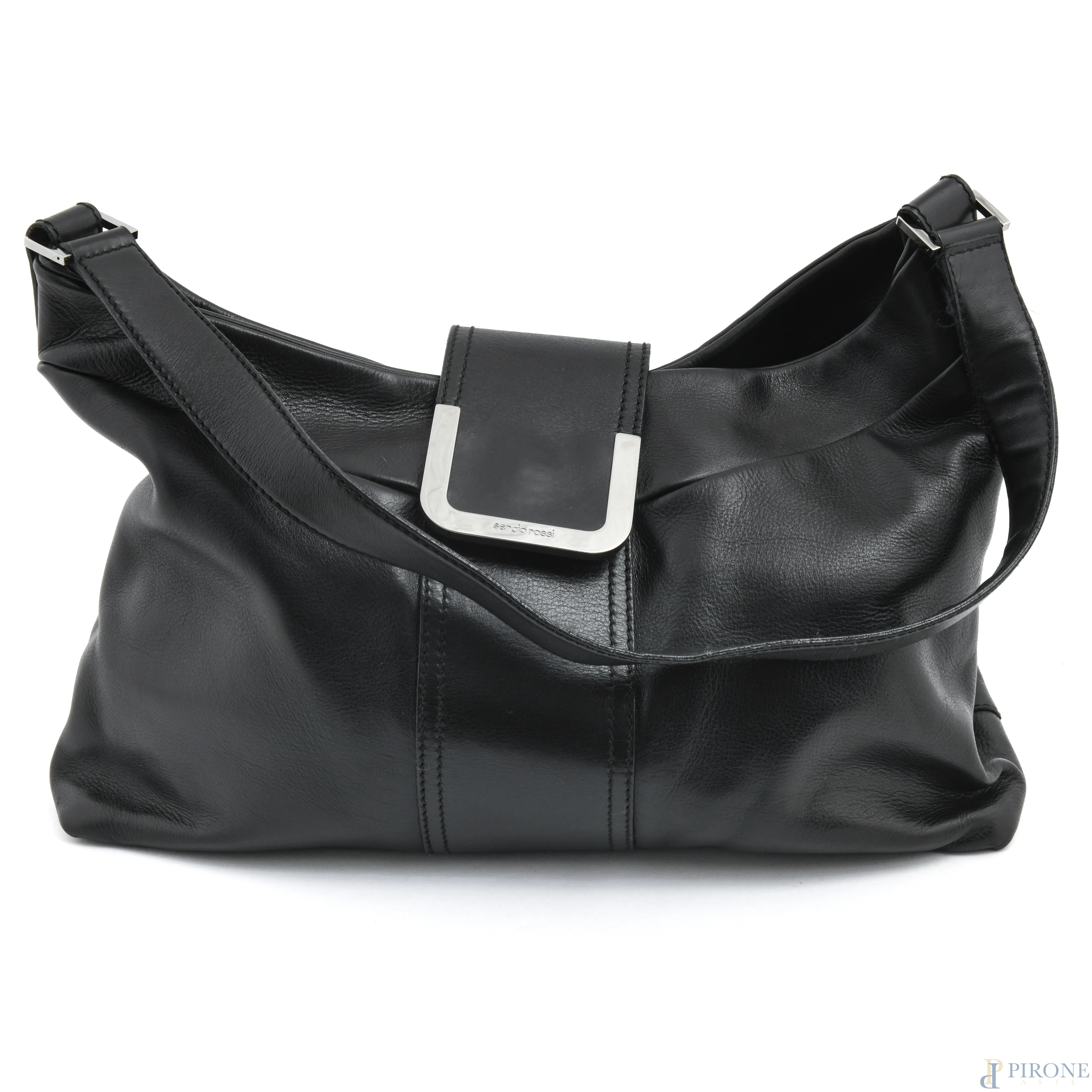 Borsa in pelle nera Sergio Rossi, cm 28x38x16, (segni di usura)