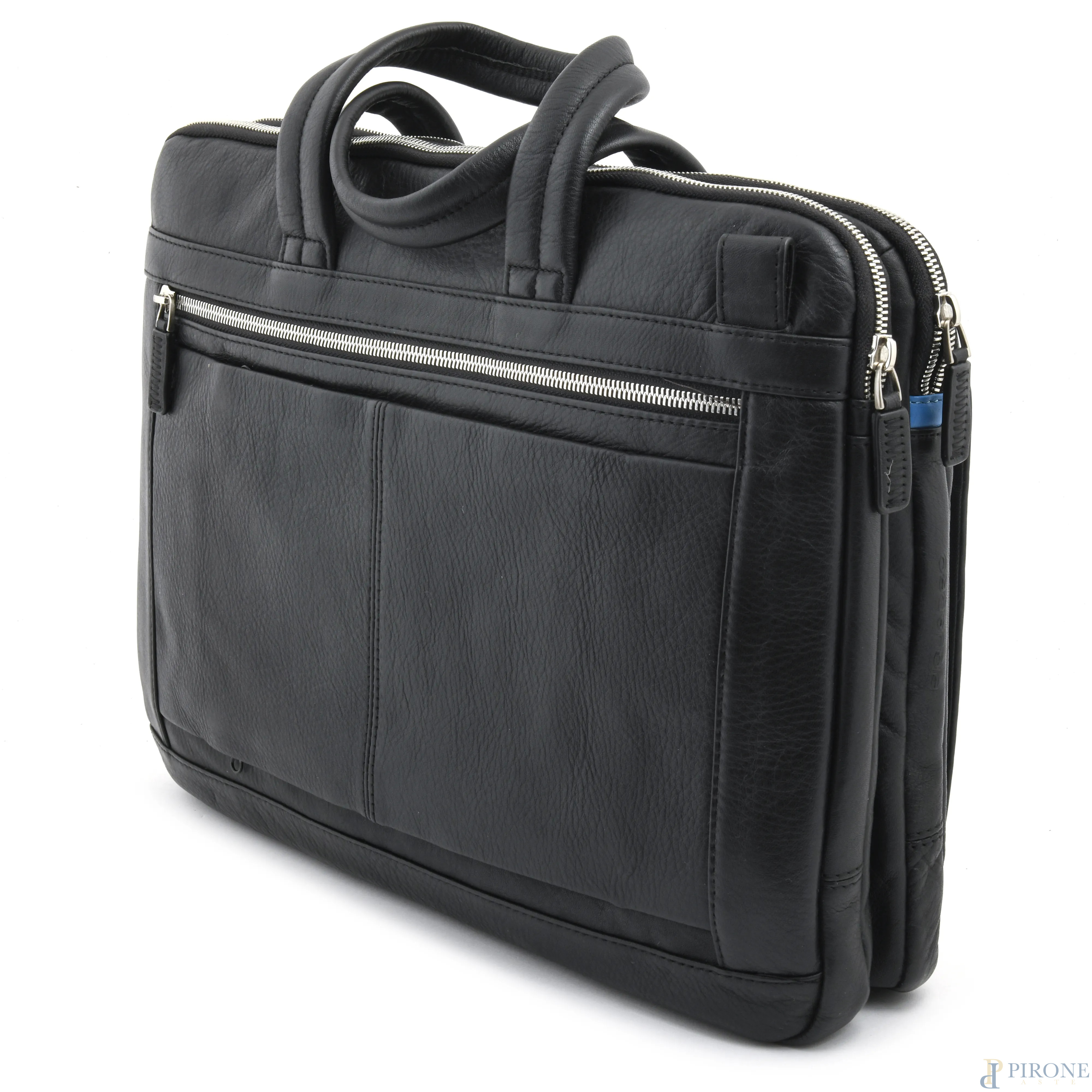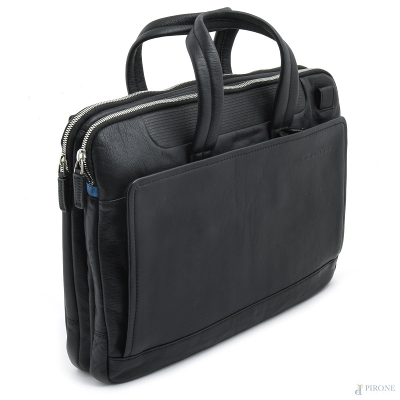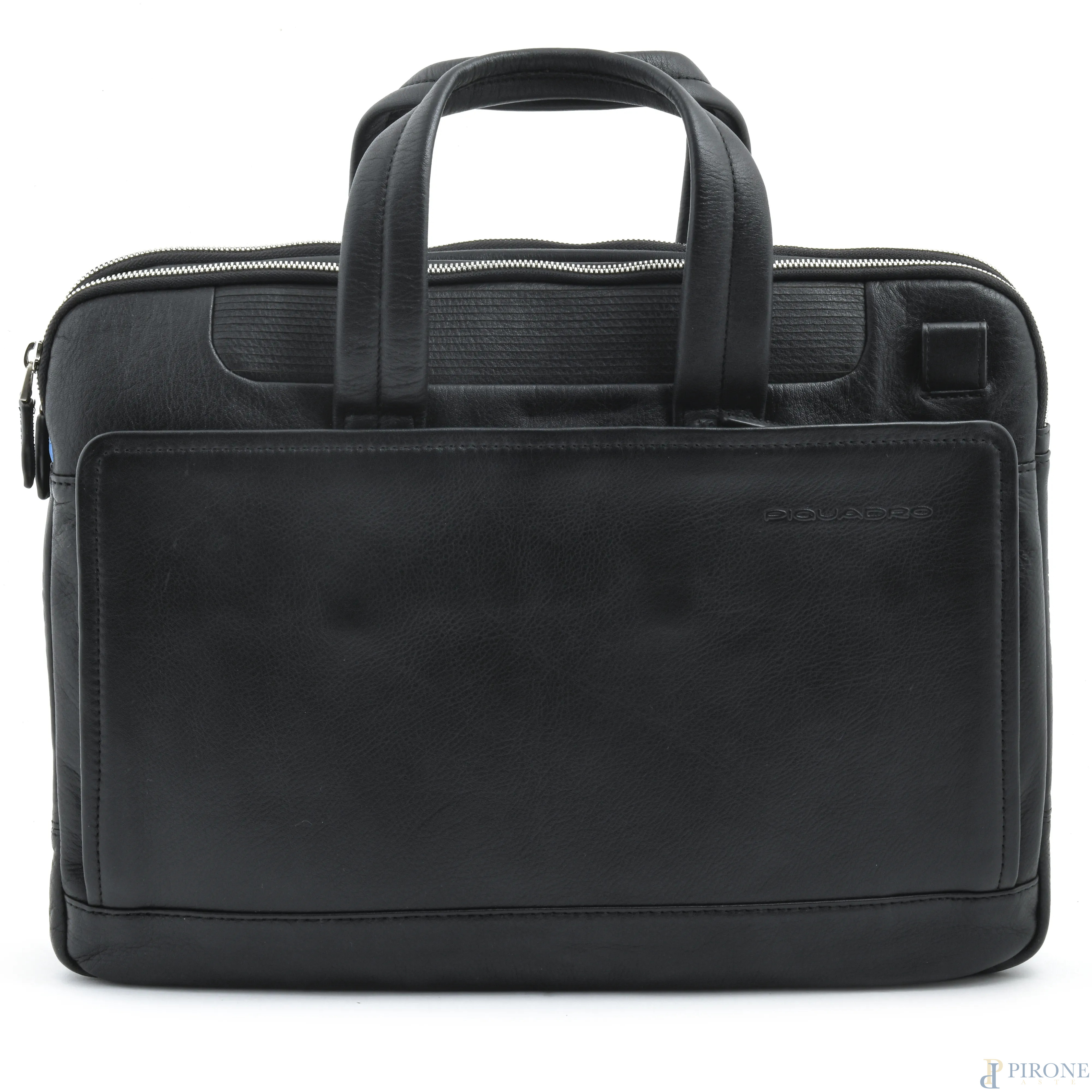 Borsa portacomputer Piquadro in pelle nera, cm 29x39x11, (segni di usura)