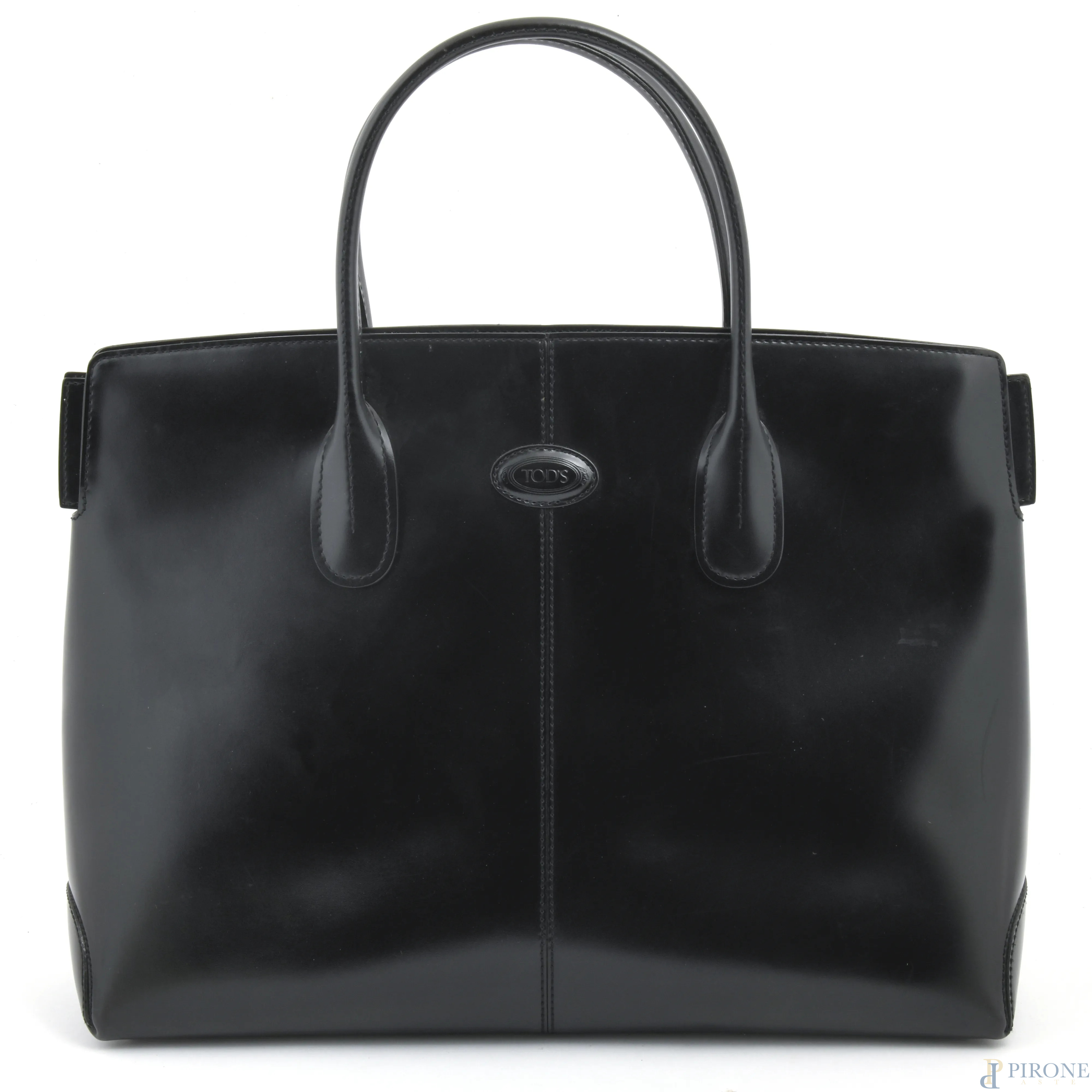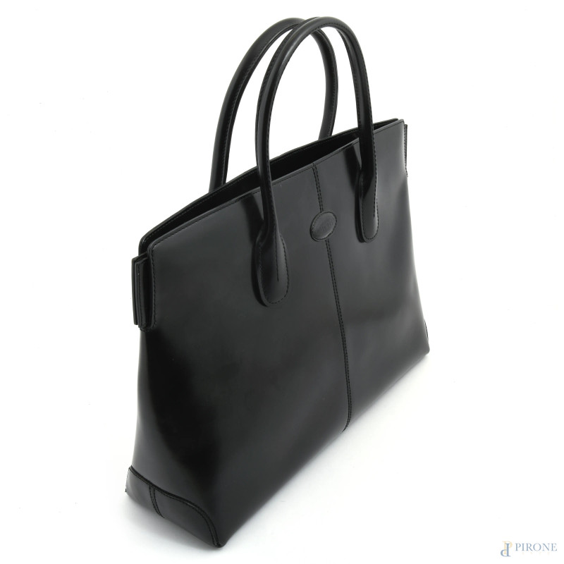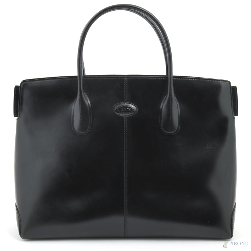 Borsa Tod's in pelle nera, cm 29,5x41x13, (segni di usura, graffi)