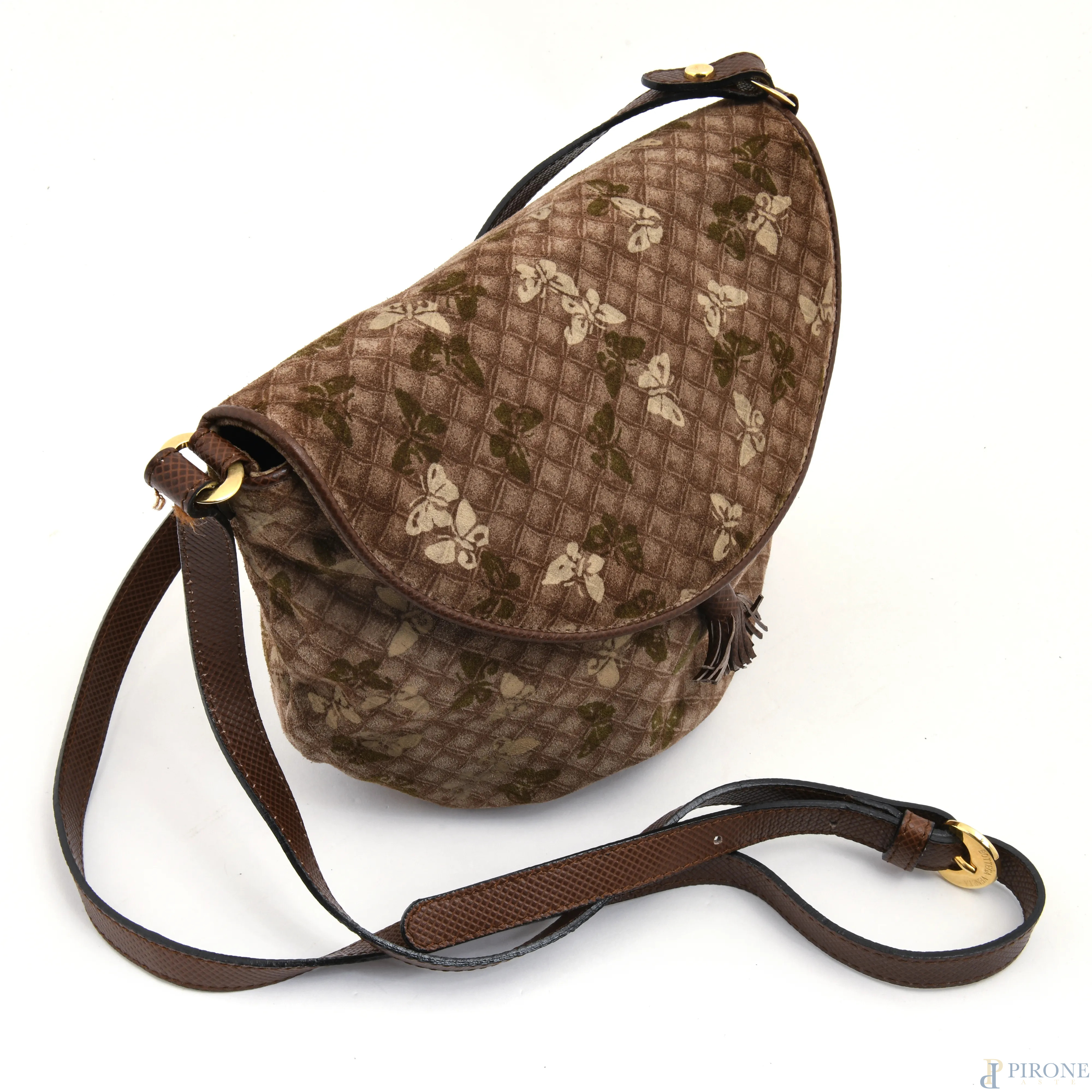 Borsetta in velluto e pelle Bottega Veneta, cm 19x23x14, (segni di usura)