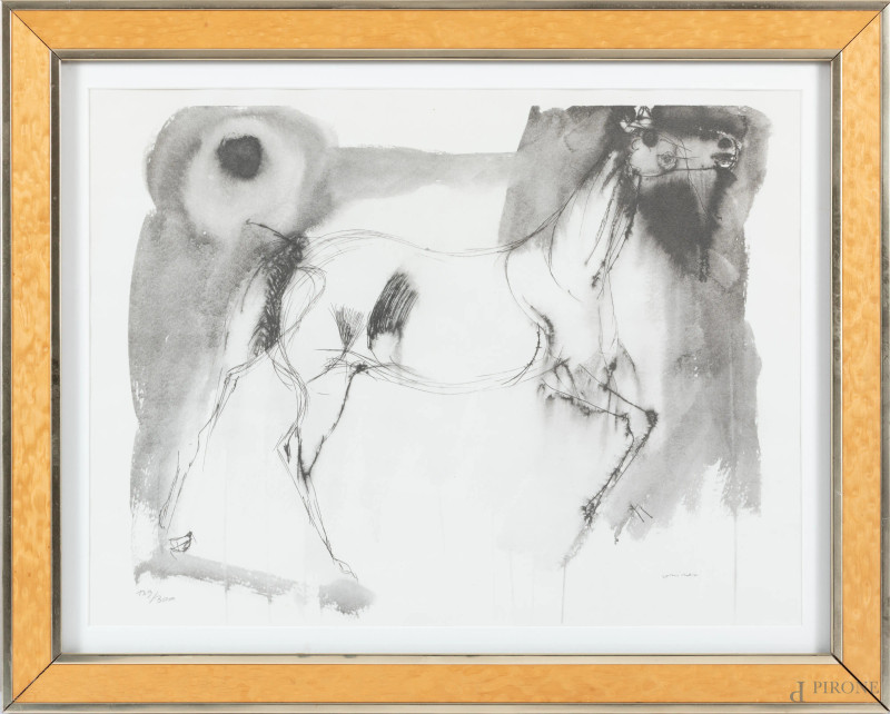 Bruno Cassinari (1912 – 1992), Cavallo, litografia su carta es. 139/300, cm44,5x58, firmato in basso a destra a grafite, entro cornice