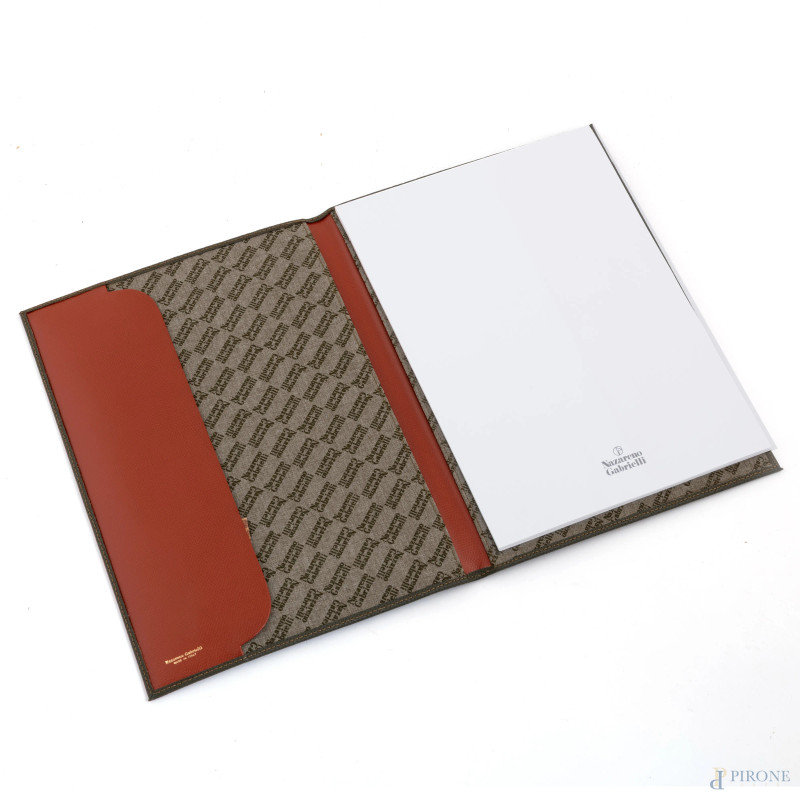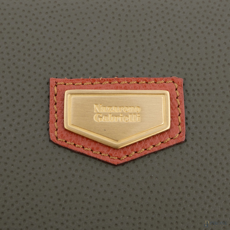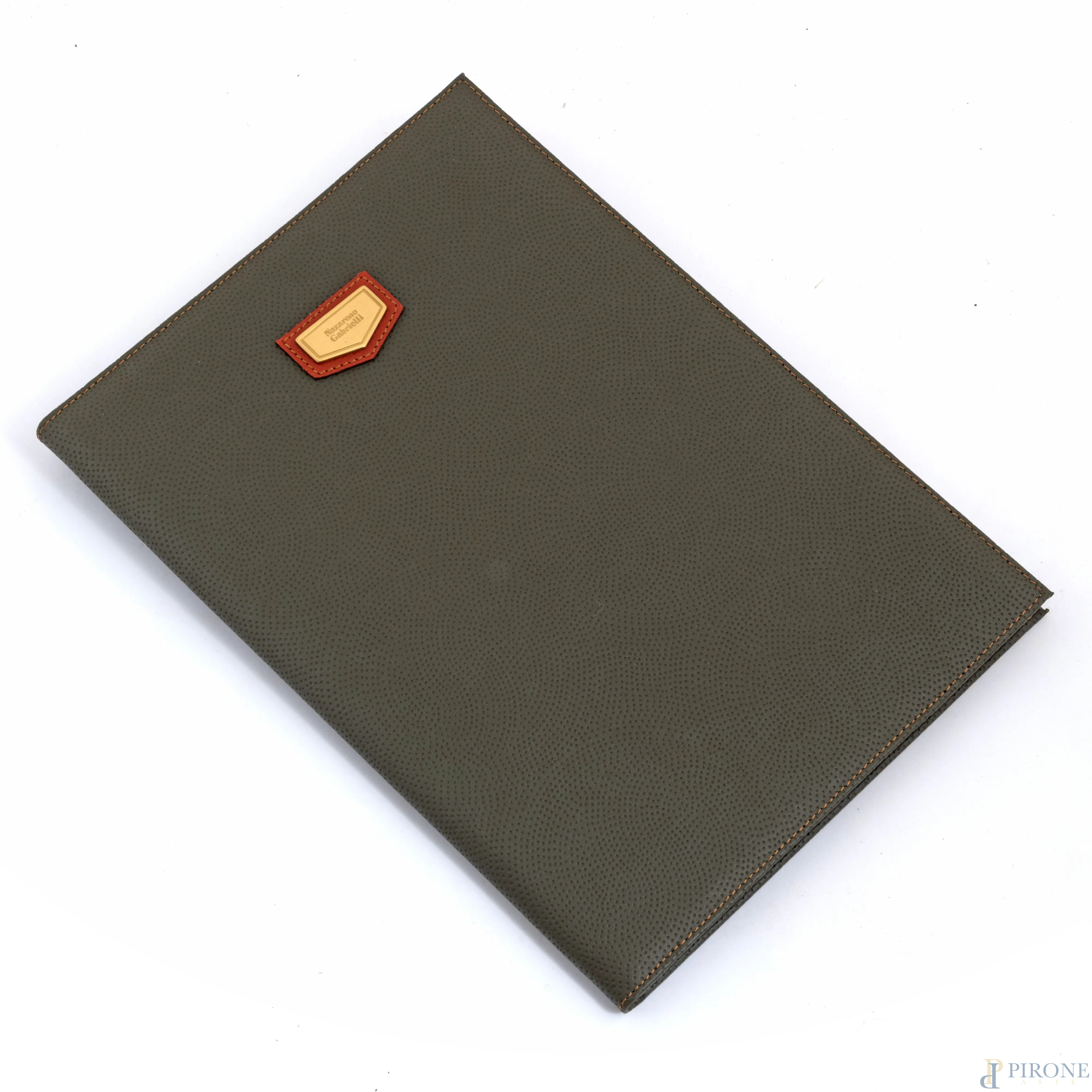 Cartella portadocumenti Nazzario Gabrielli in pelle verde oliva e marrone, cm 32x23, (segni di usura)