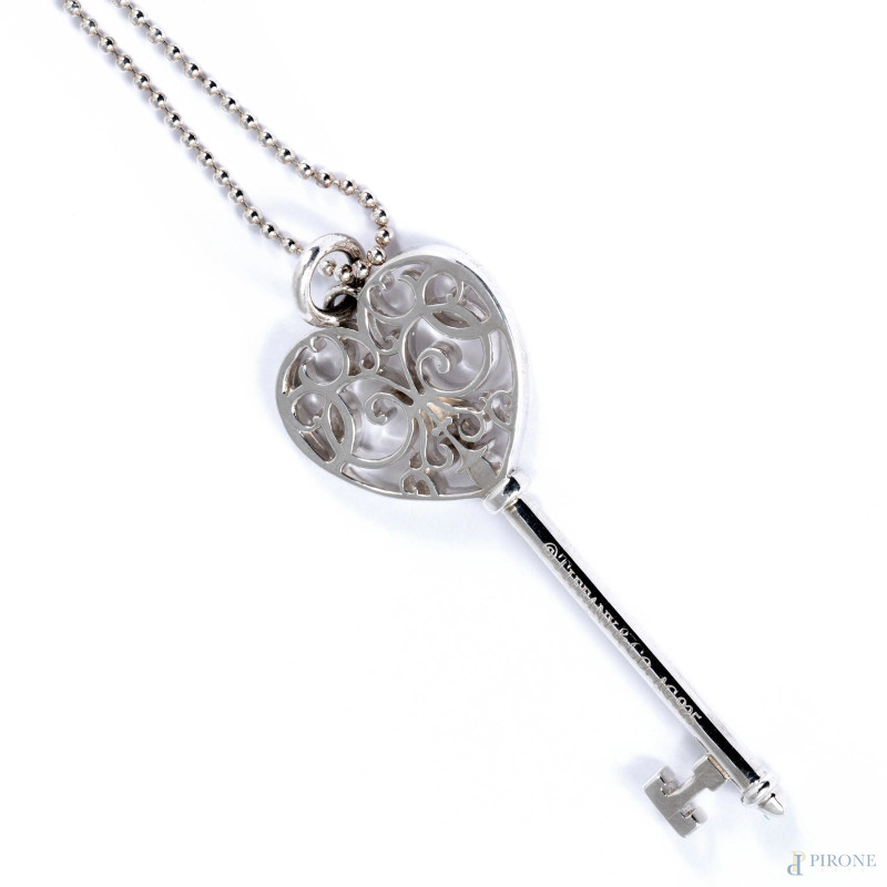 Collana Tiffany con ciondolo a foggia di chiave in argento 925, lunghezza cm 52