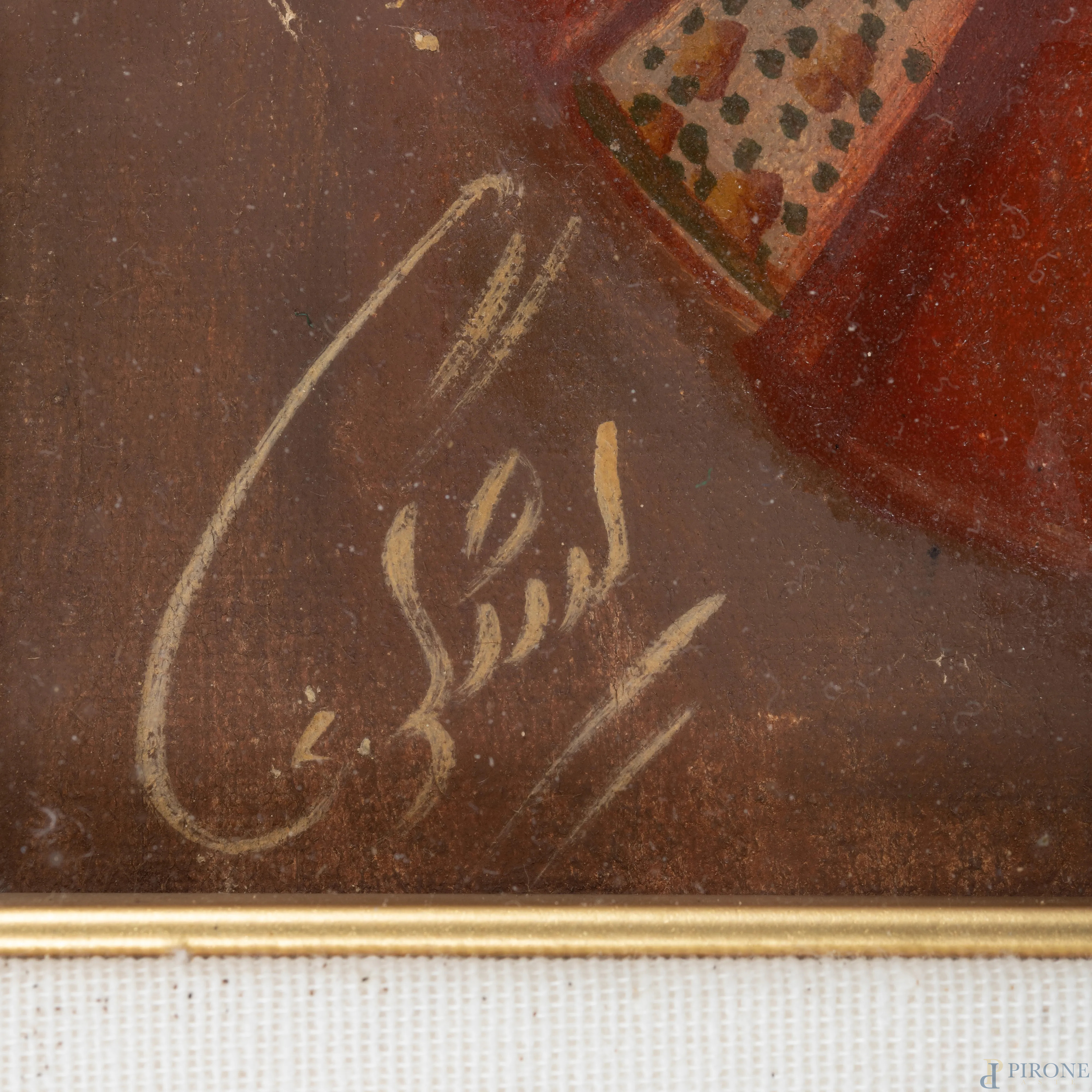 Donna persiana, XIX-XX secolo, olio su tela, cm 68x45, firmato in basso a sinistra, entro cornice, (cadute di colore, abrasioni)
