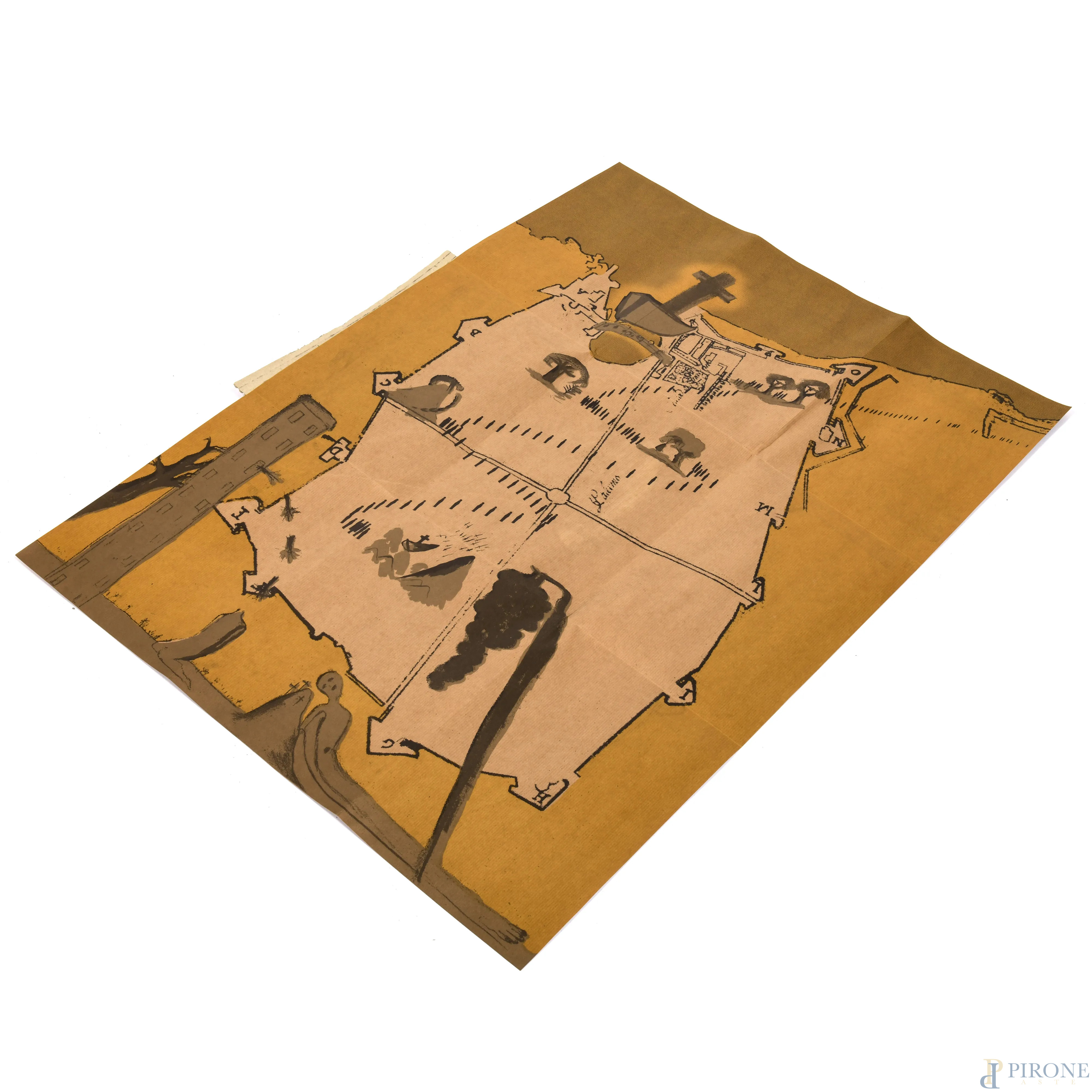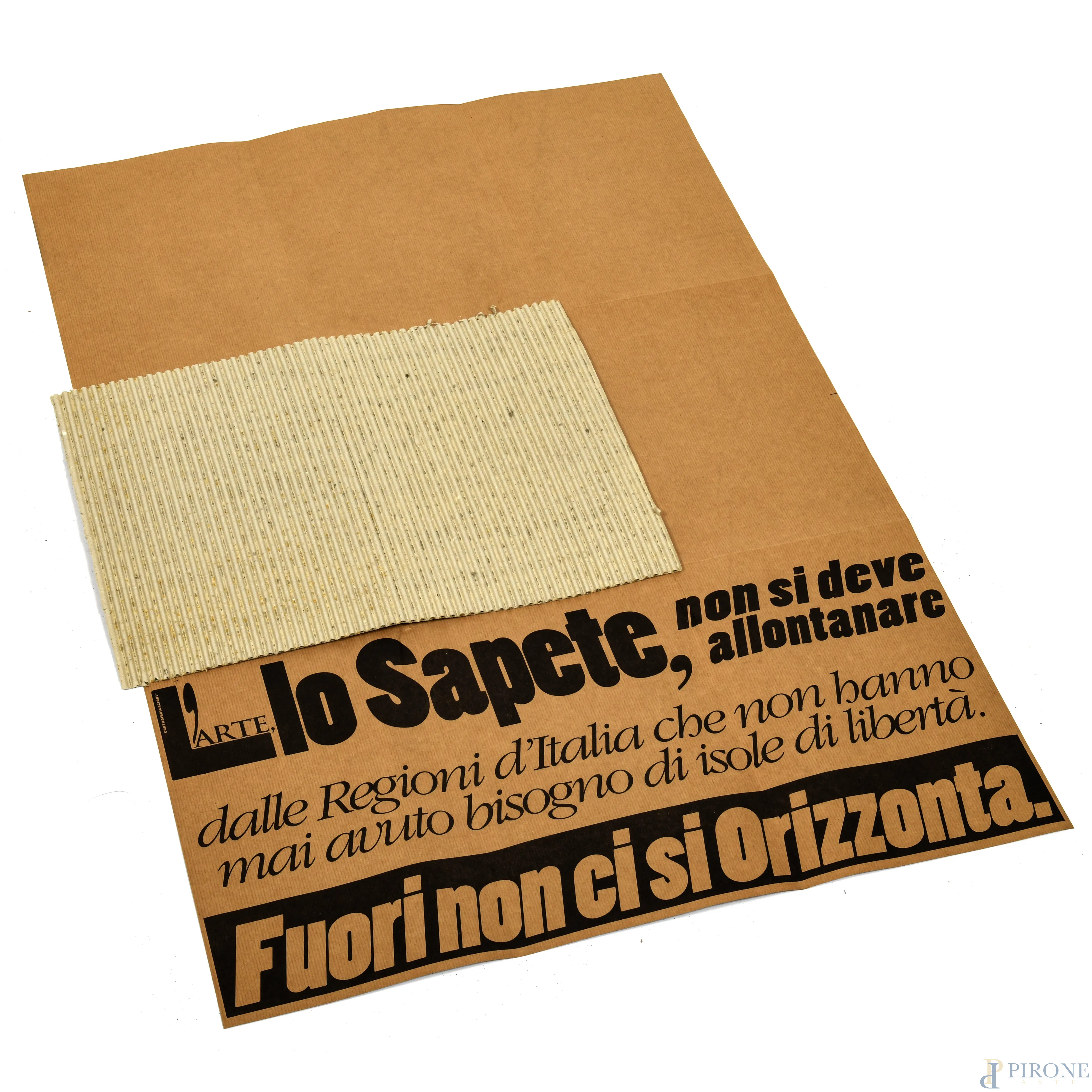 Enzo Cucchi (1949-), L'Arte, Lo sapete non si deve allontanare, manifesto, cm 89x61,5, entro scatola, (segni di piegatura della carta)