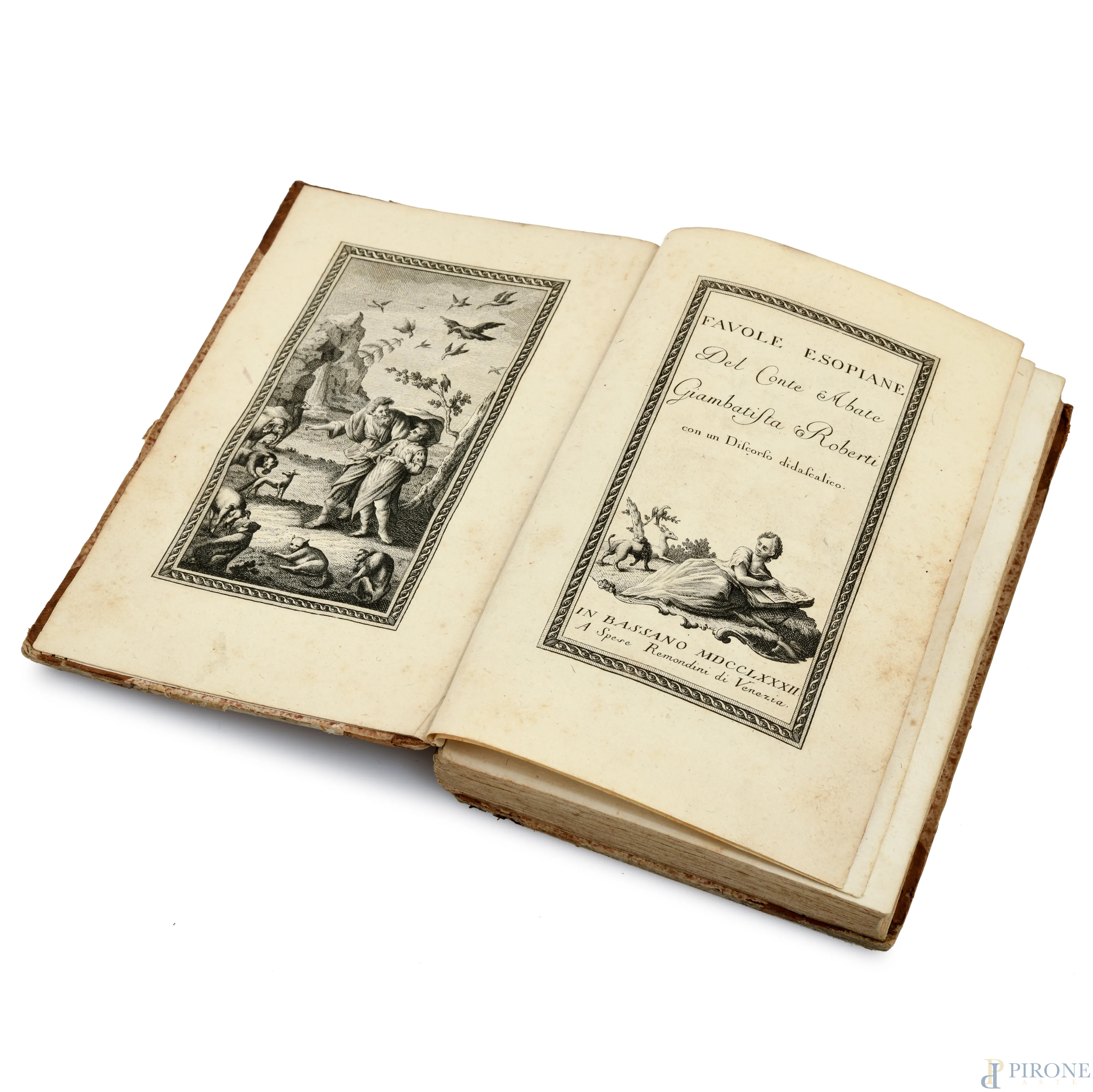 Favole Esopiane del Conte Abate Giambattista Roberti, Bassano, 1782, (segni di usura, tracce di umidità, difetti)