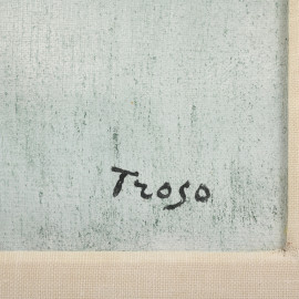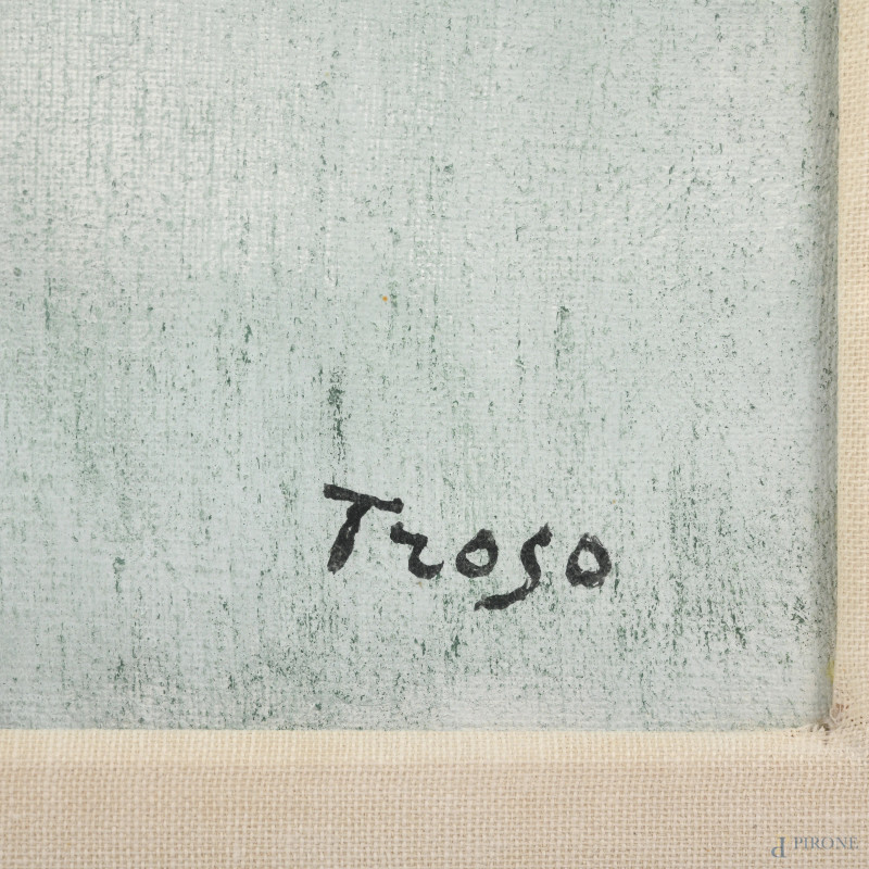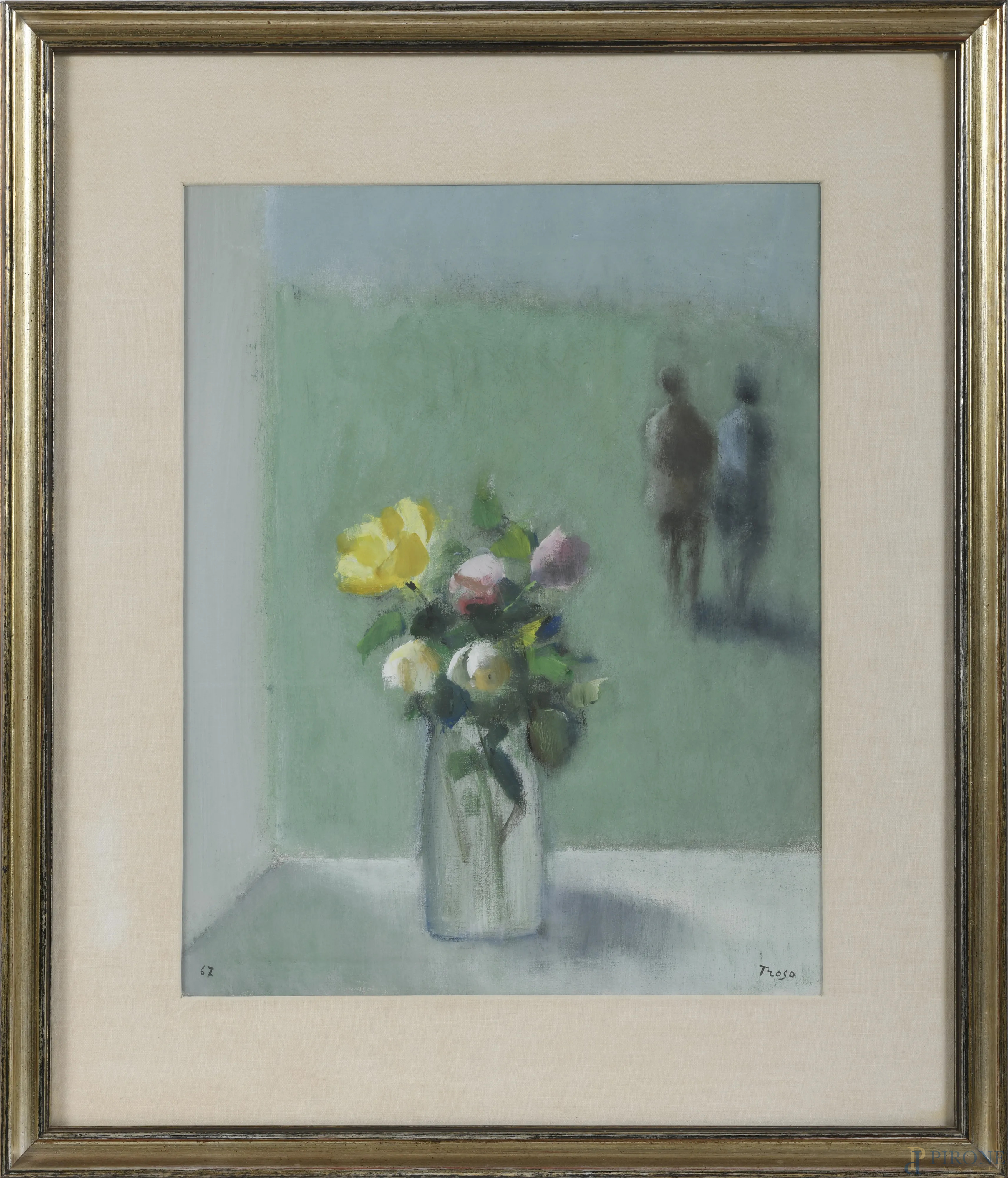 Fernando Troso (1910-1990), Vaso di fiori e figure, tecnica mista su tela, cm 49x39, firmato in basso a destra, datato "67" in basso a sinistra, entro cornice