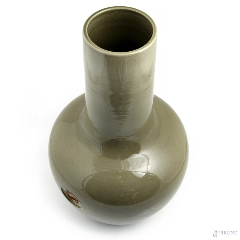 Grande vaso in maiolica dipinta nei toni del verde, XX secolo, altezza cm 52, (segni di usura)