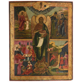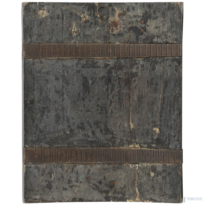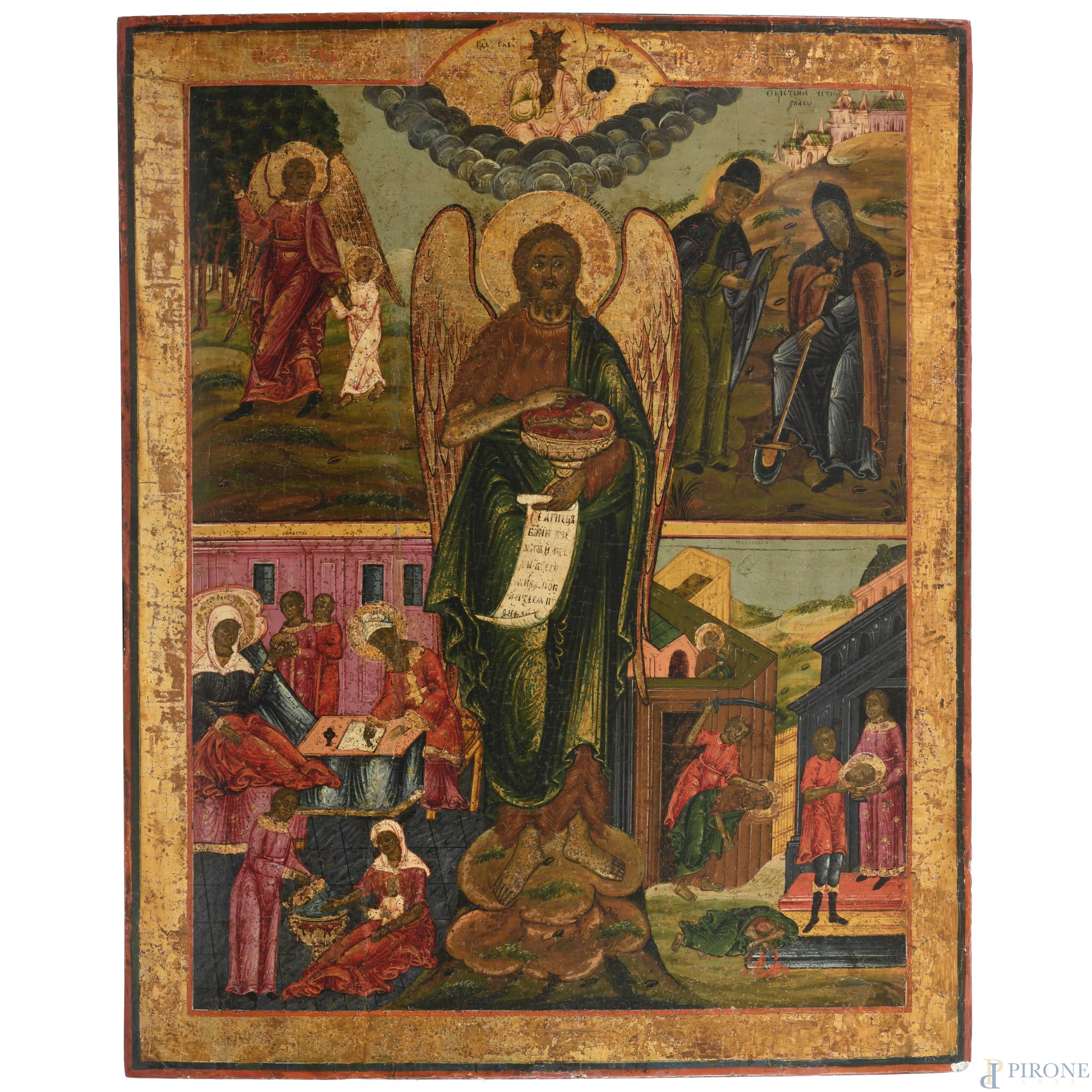 Icona raffigurante San Giovanni Battista, XIX secolo, tempera su tavola, cm 56,5x45, (segni di usura, craquelure, cadute di colore, fessurazioni, difetti)