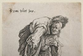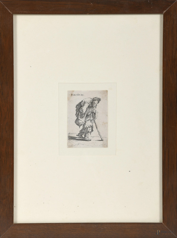 Il viandante, XIX -XX secolo, stampa, cm 9x6,5, entro cornice, (tracce di umidità, restauri, foxing, difetti)