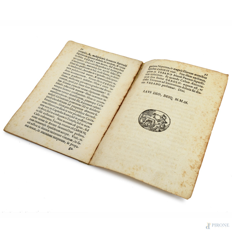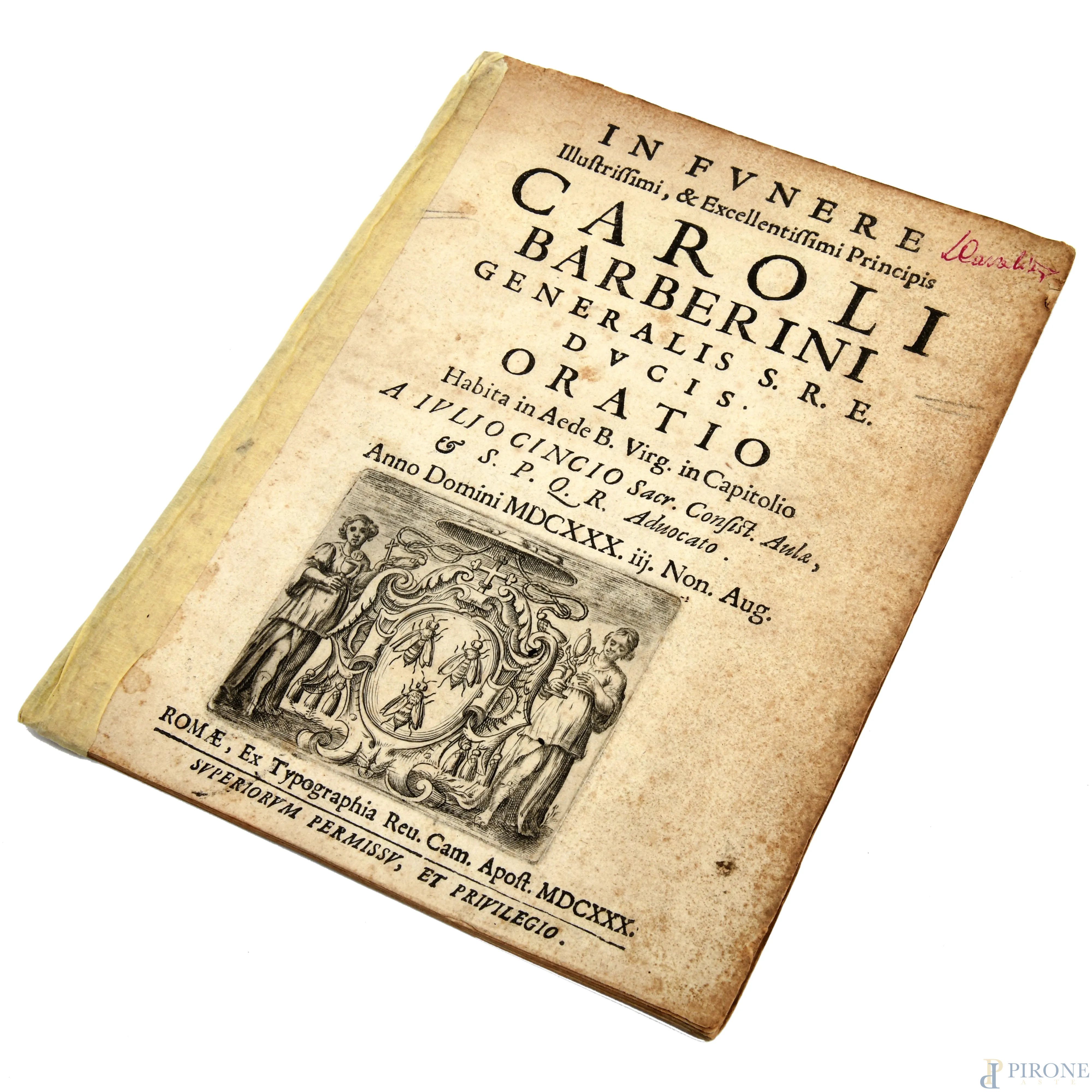 In Funere Illustrissimi e Excellentissimi Principis Caroli Barberini, 1630, (segni di usura, difetti)