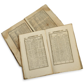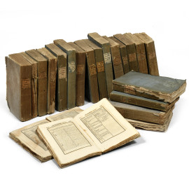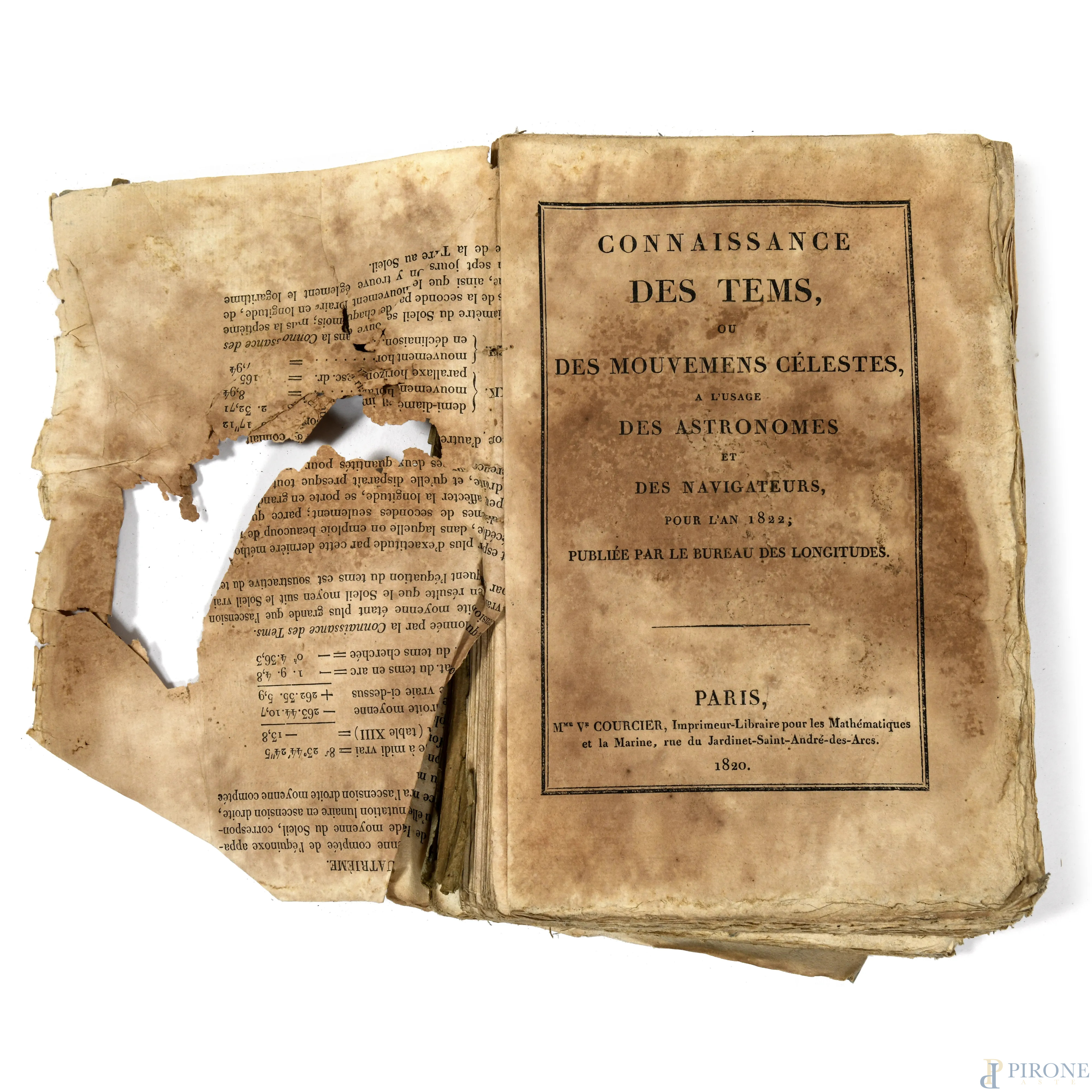 Lotto composto da: Connaissance des Tems ou des Mouvements Celestes a l'Usage des Astronomes et des Navigateurs, XIX secolo, 20 voll e The Nautical Almanac and Astronomical Ephemeris for the year 1816, (difetti, strappi, gravi tracce di umidità, difetti, rotture, piegature, bruniture)