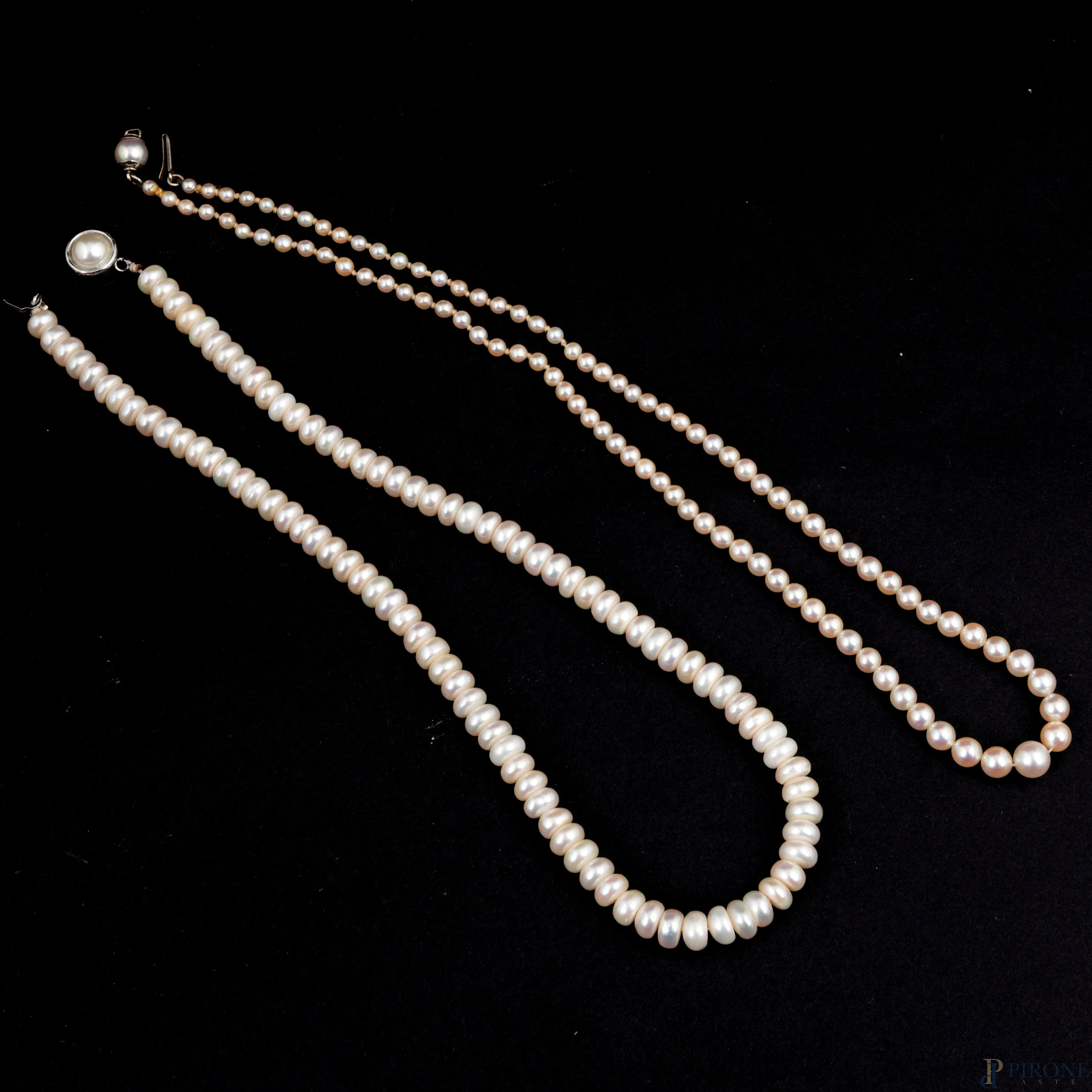 Lotto composto da due collane a un filo di perle, lunghezza massima cm 46