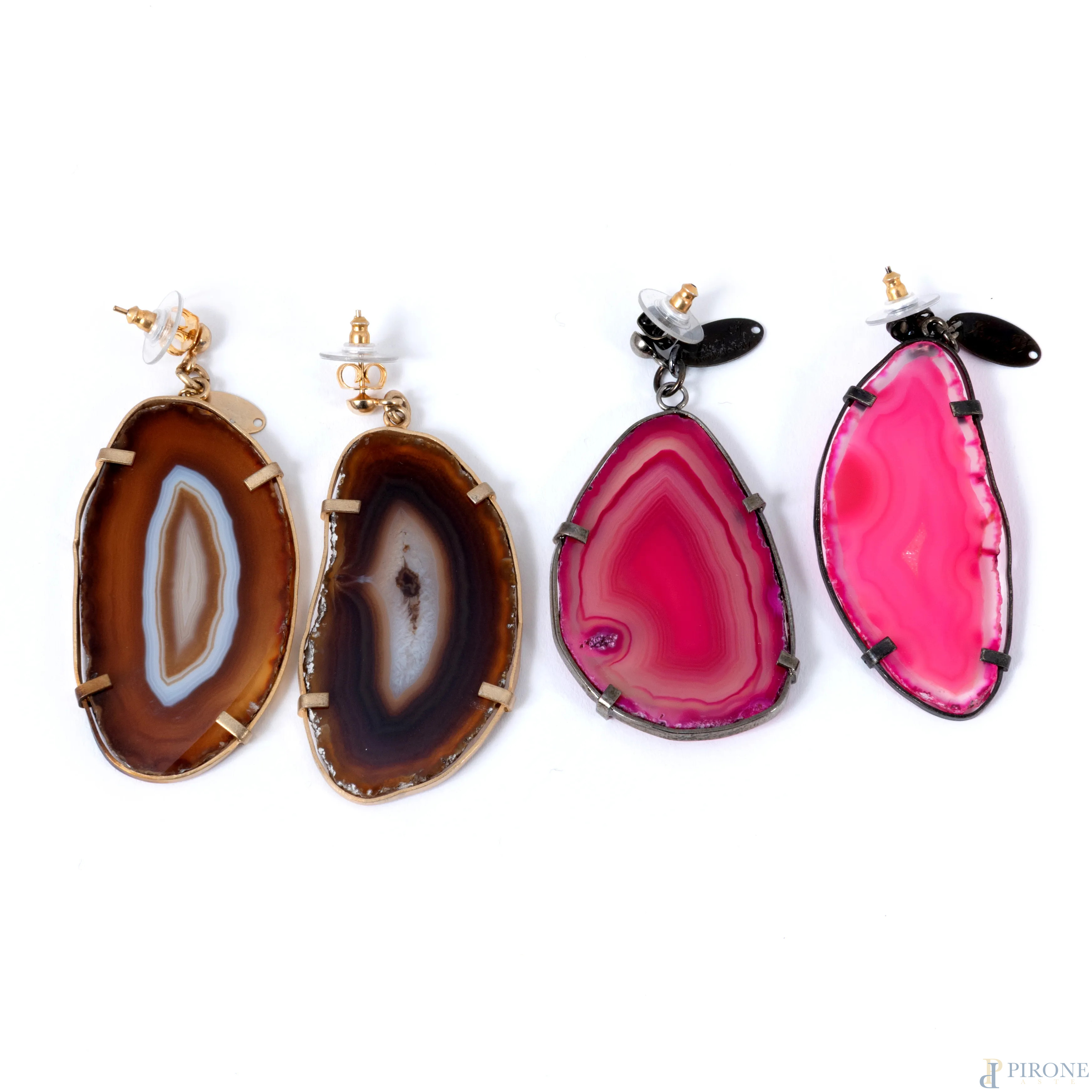 Lotto composto da due paia di orecchini con agate, lunghezza massima cm 7